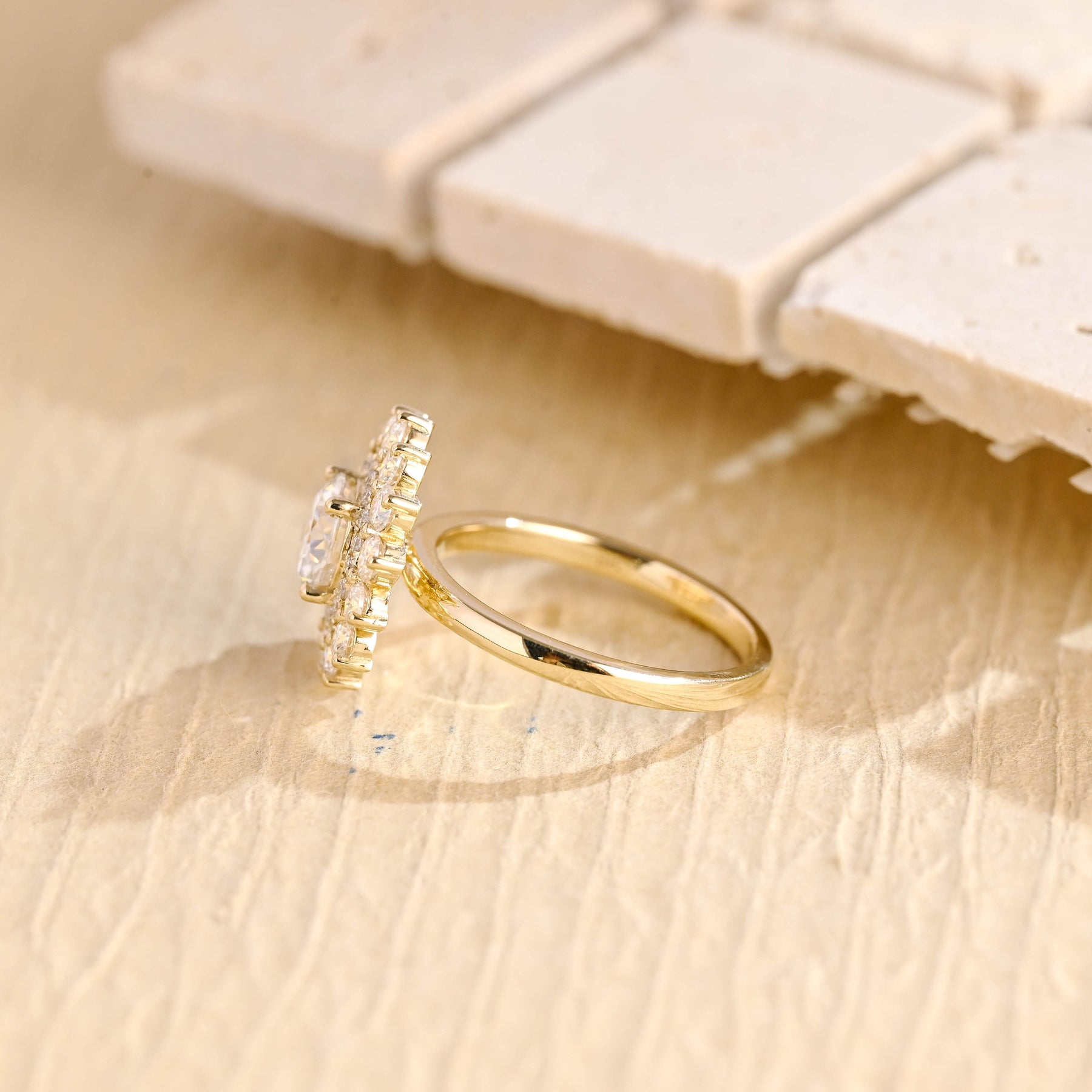 0.50CT Round Brilliant Halo Cluster Moissanite Engagement Ring