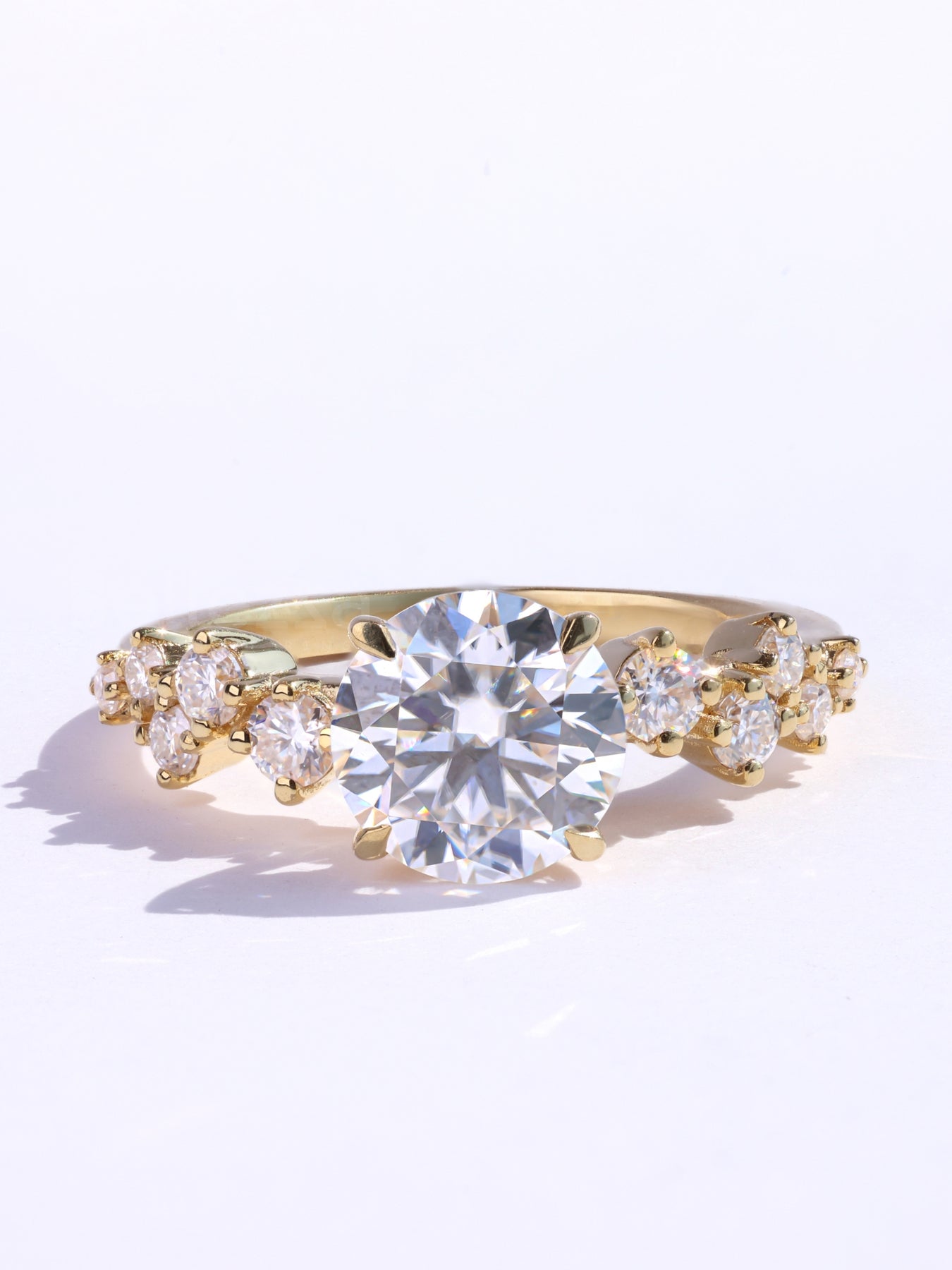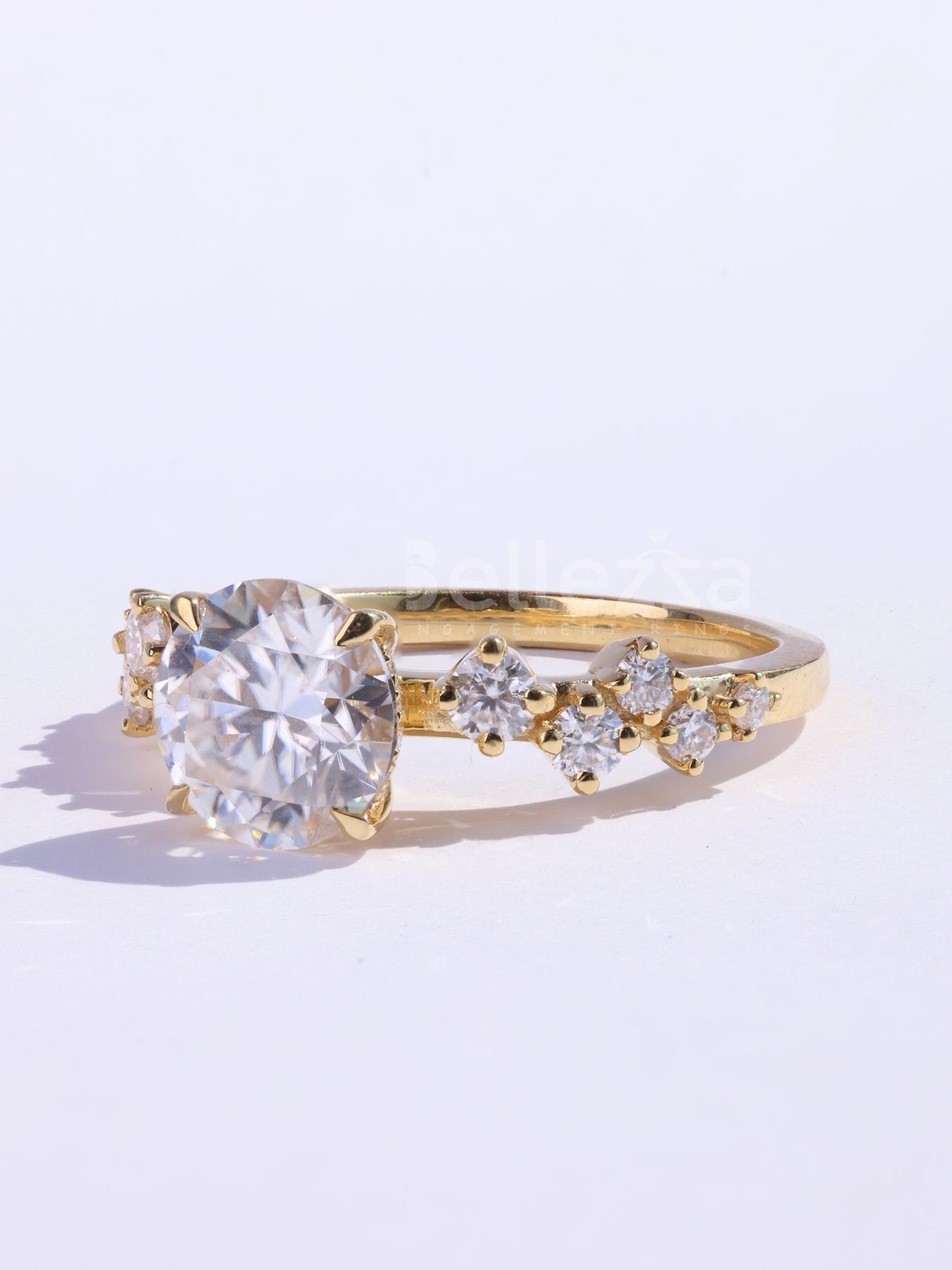 1.0CT Round Cut Cluster Diamond Moissanite Engagement Ring