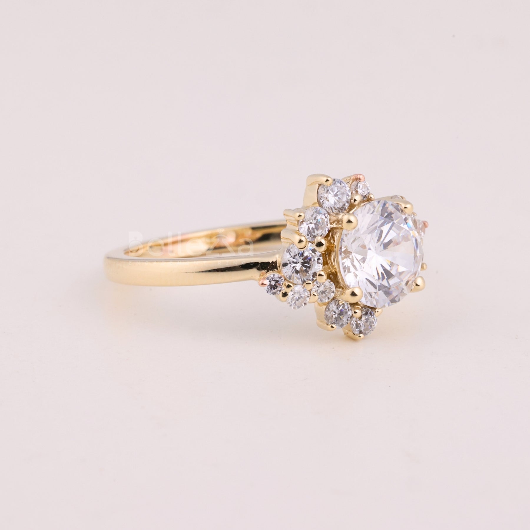 1.0CT Round Cut Cluster Diamond Moissanite Engagement Ring