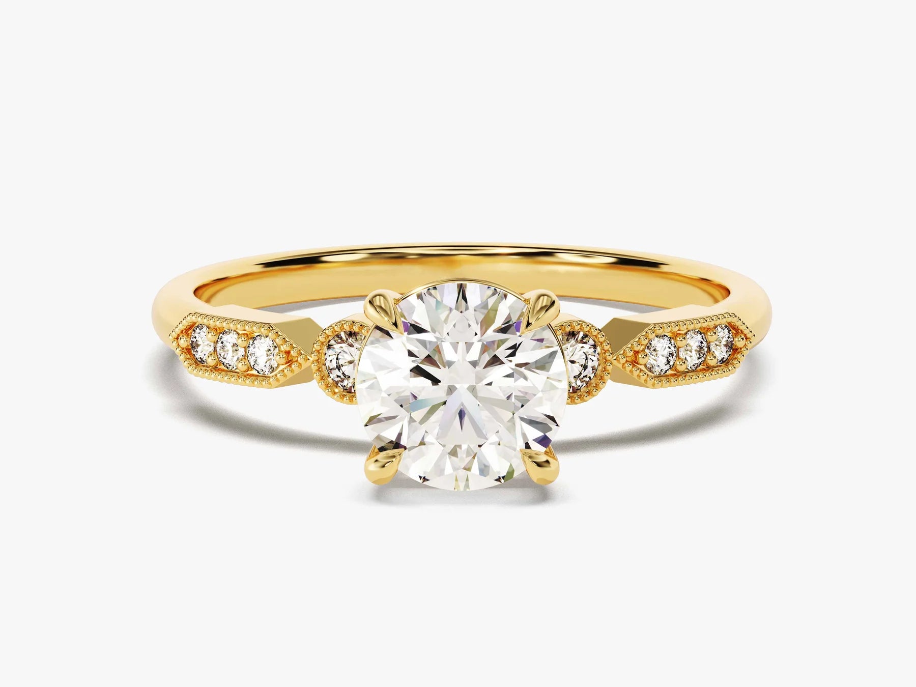 1.0CT Round Cut Diamond Milgrain Art Deco Moissanite Engagement Ring