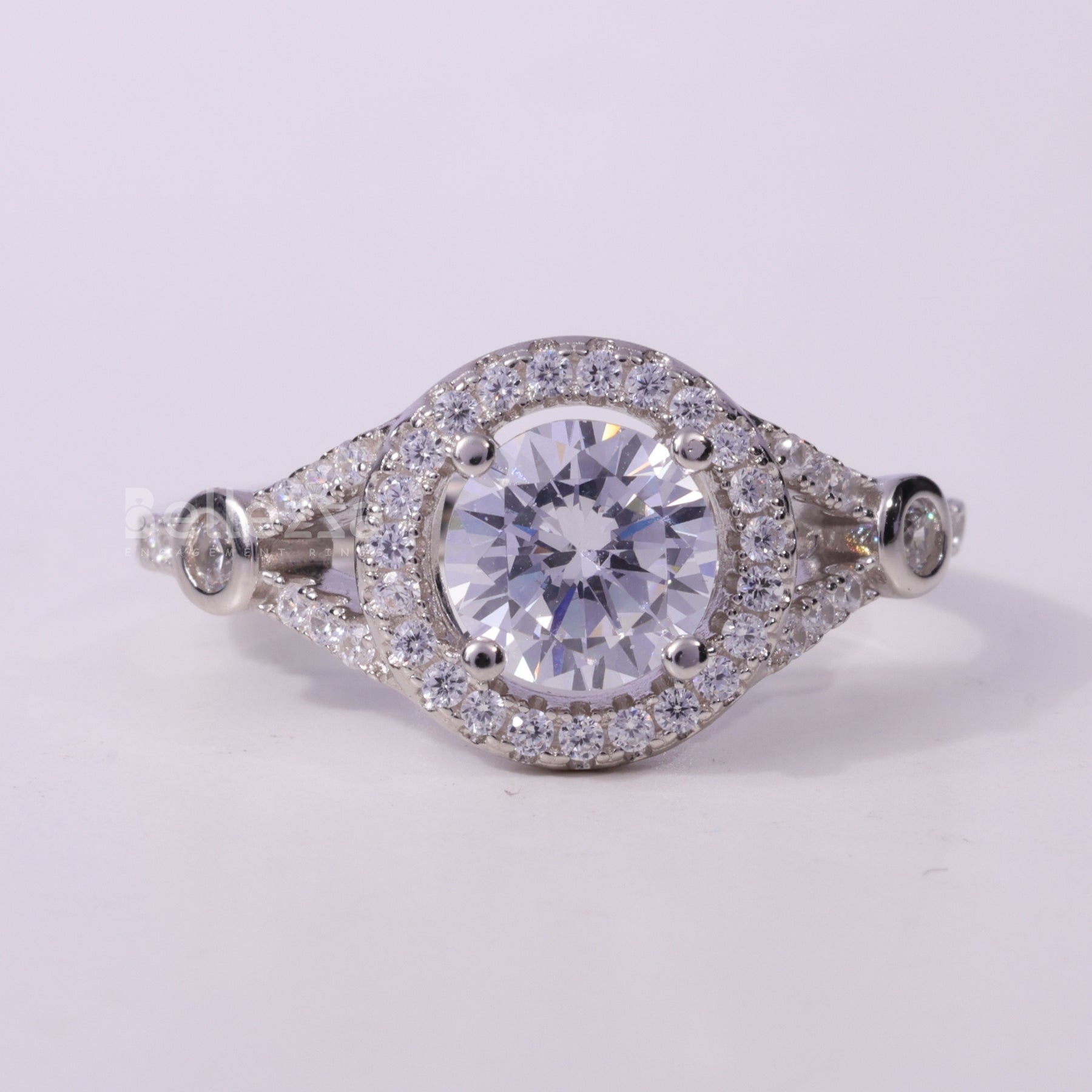 1.0CT Round Cut Halo Cluster Diamond Moissanite Engagement Ring