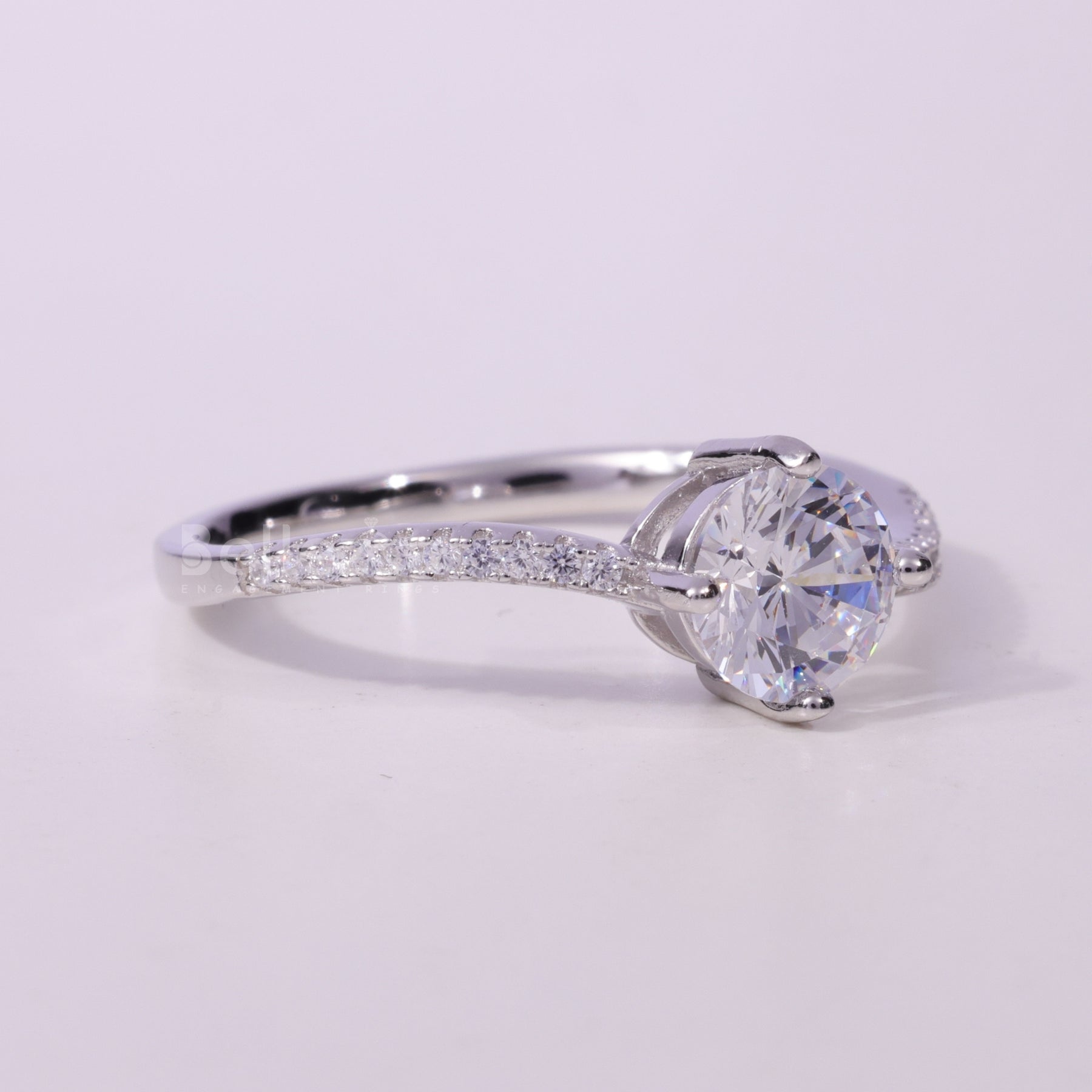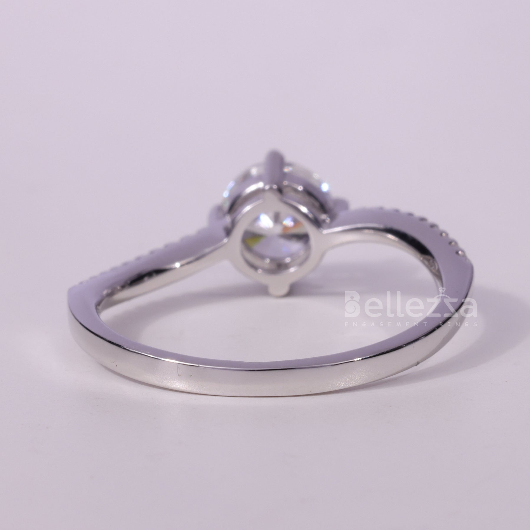 1.0CT Round Cut Pave Setting Moissanite Engagement Ring