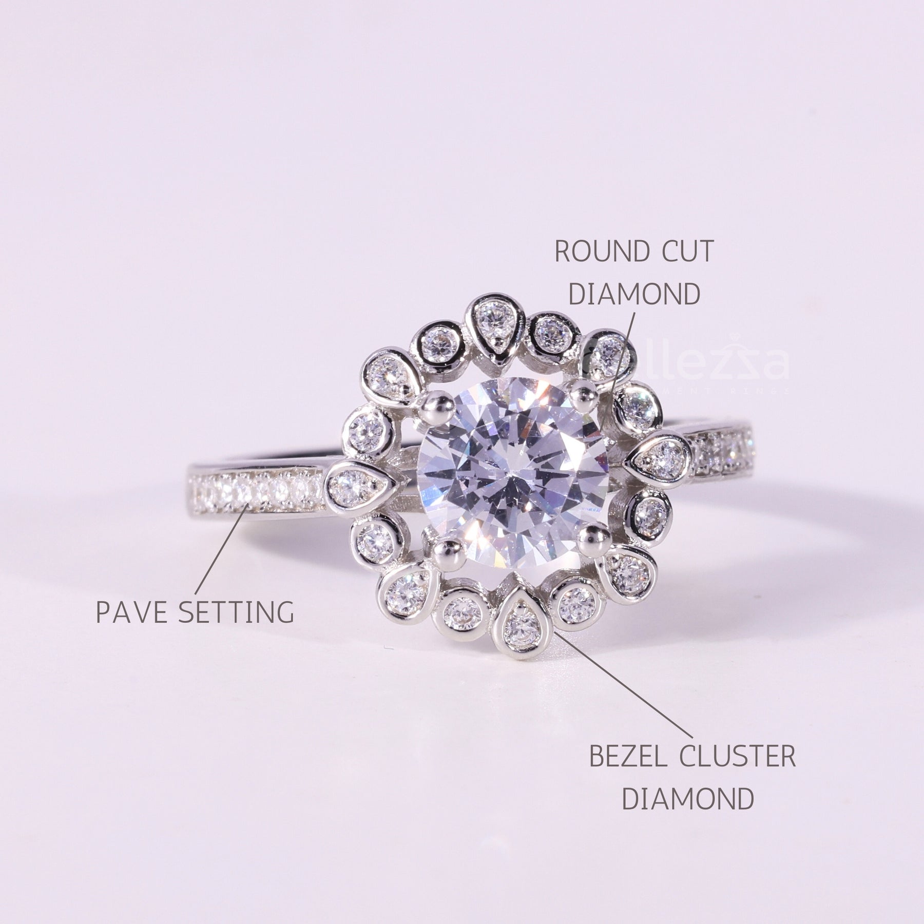 1.0CT Round Cut Unique Cluster Bezel Setting Engagement Ring
