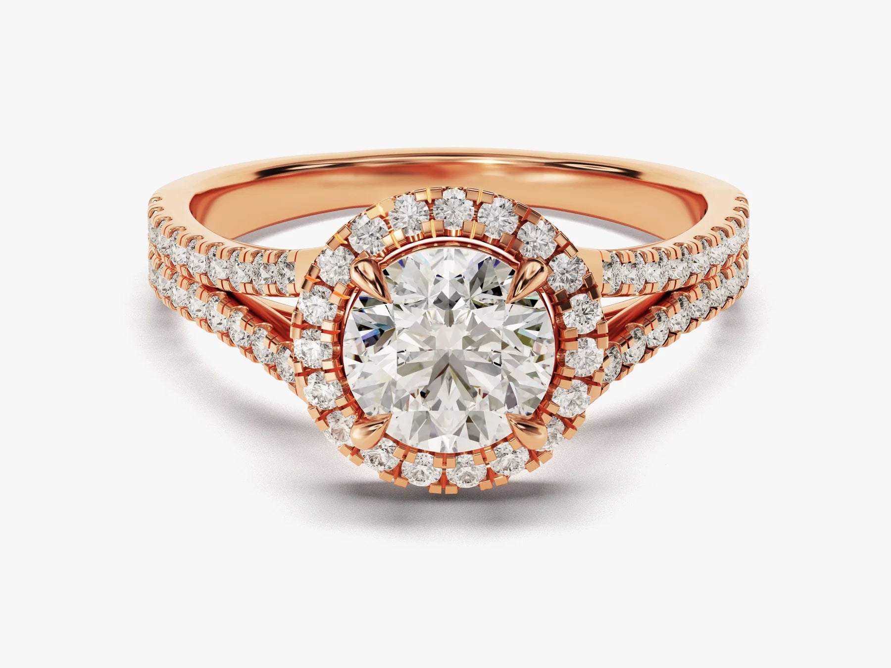 1.0CT Round Diamond Double Pave Halo Setting Moissanite Engagement Ring