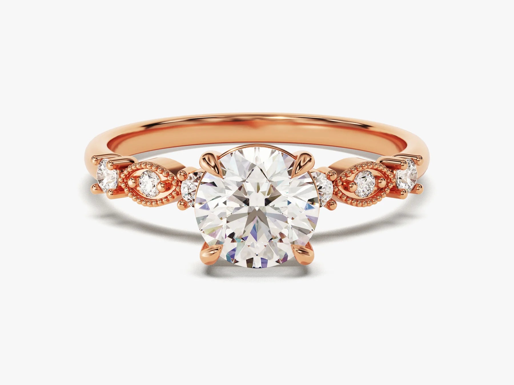 1.0CT Round Diamond Milgrain Setting Moissanite Engagement Ring
