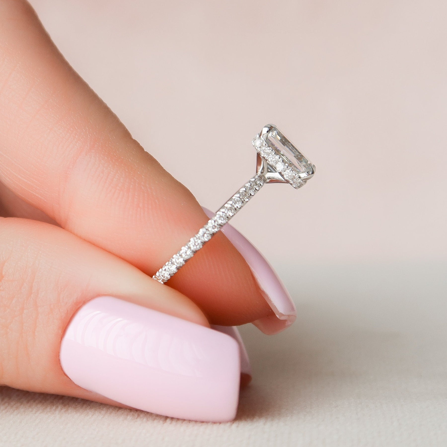 1.50CT Emerald Cut Hidden Halo Moissanite Engagement Ring
