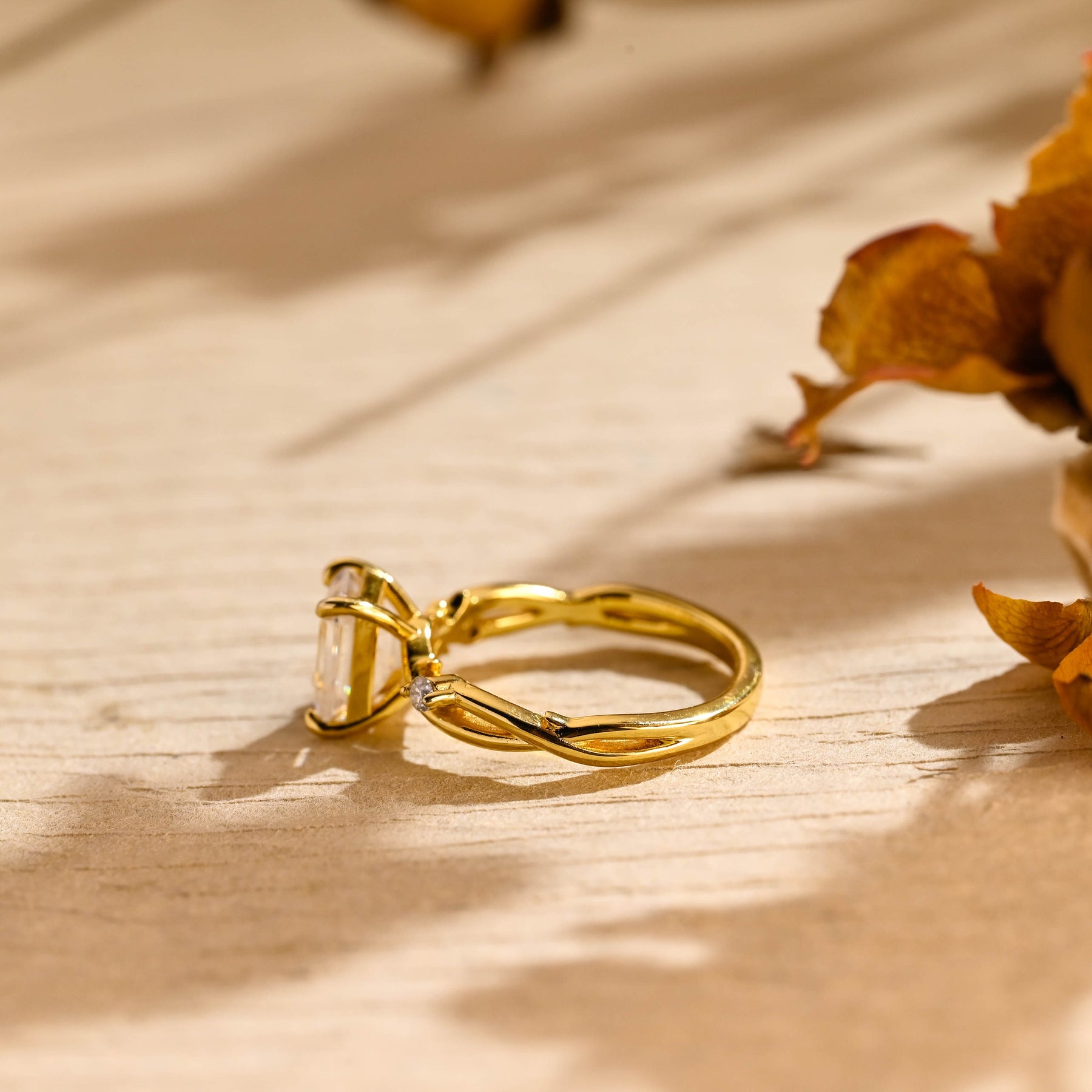 1.50 CT Emerald Cut Nature Inspired Twig Moissanite Engagement Ring