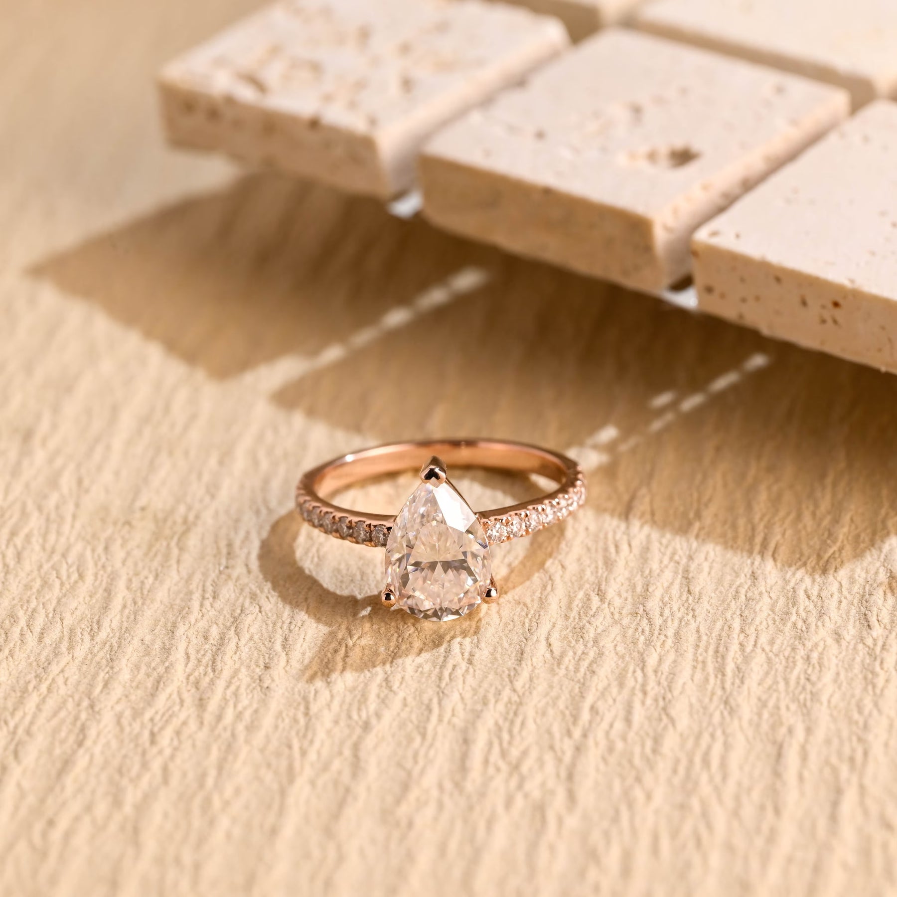 1.50 CT Pear Diamond Pave Setting Moissanite Engagement Ring