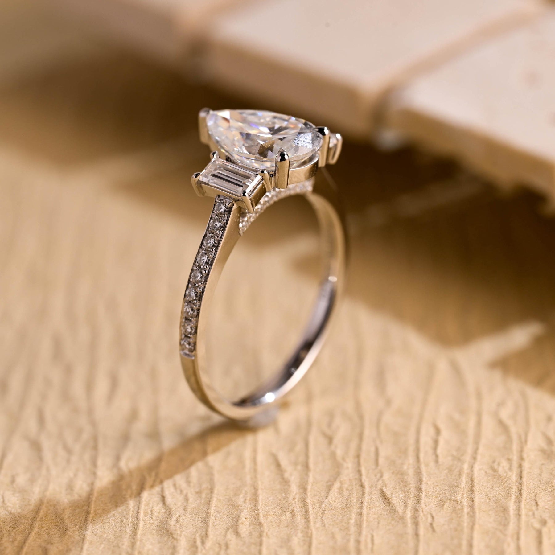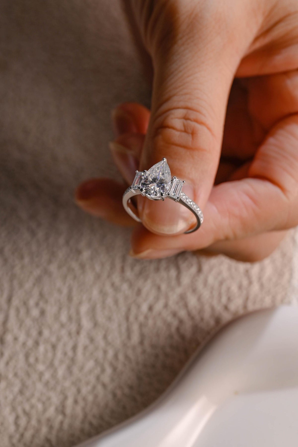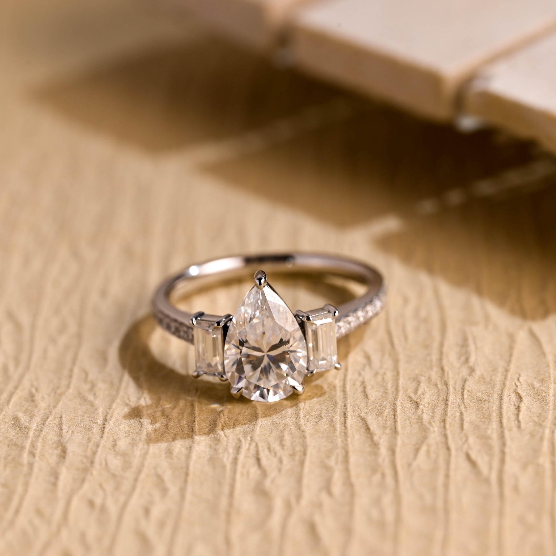 1.50 CT Pear Diamond Three Stone Moissanite Engagement Ring