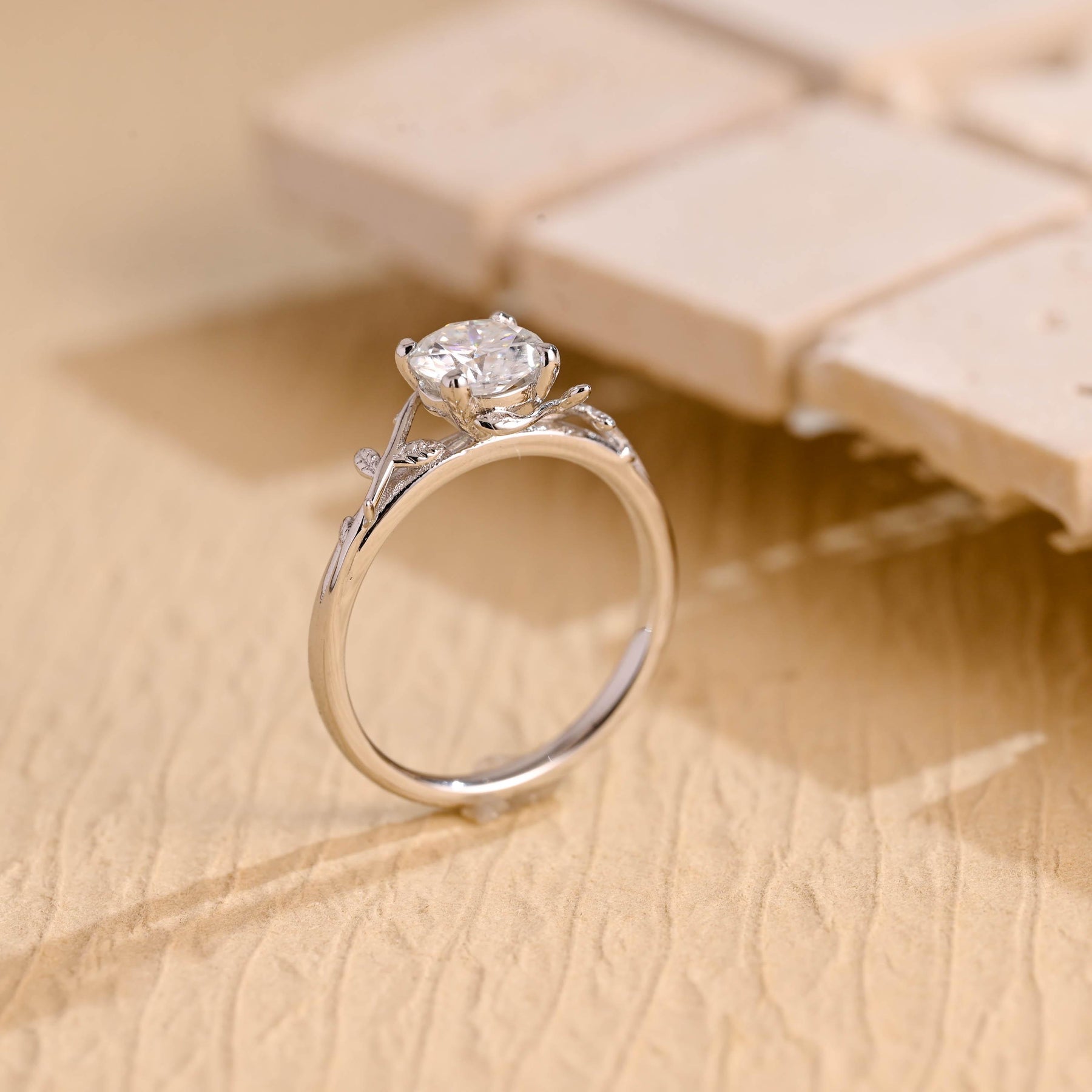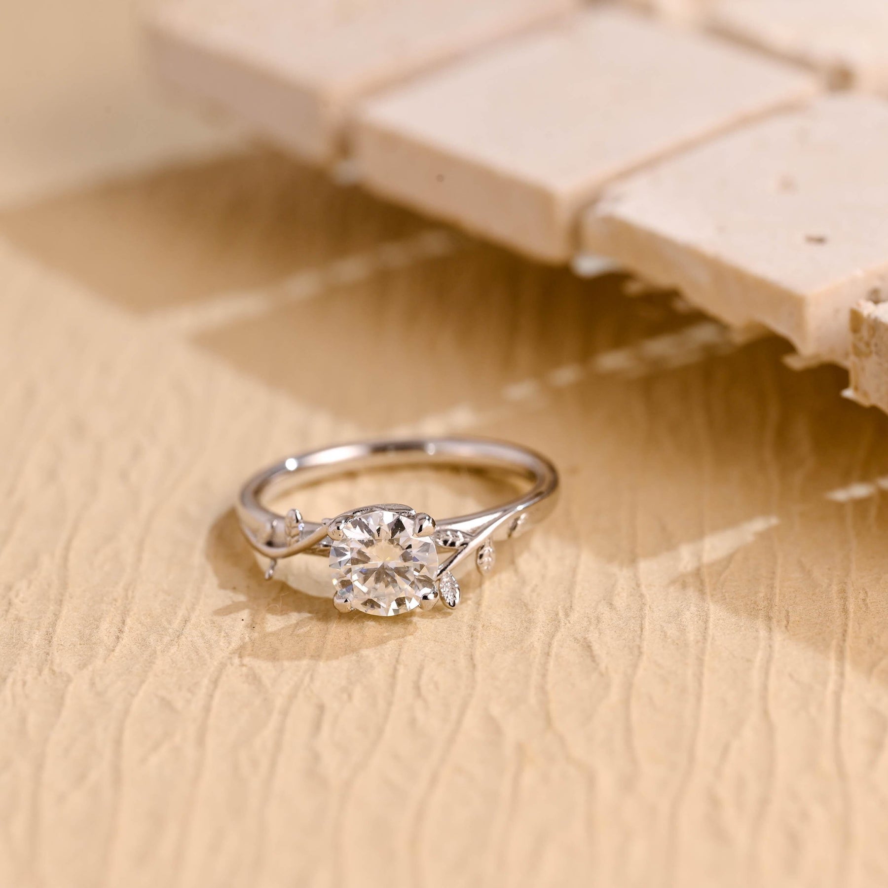 1.50 CT Round Brilliant Nature Inspired Moissanite Engagement Ring