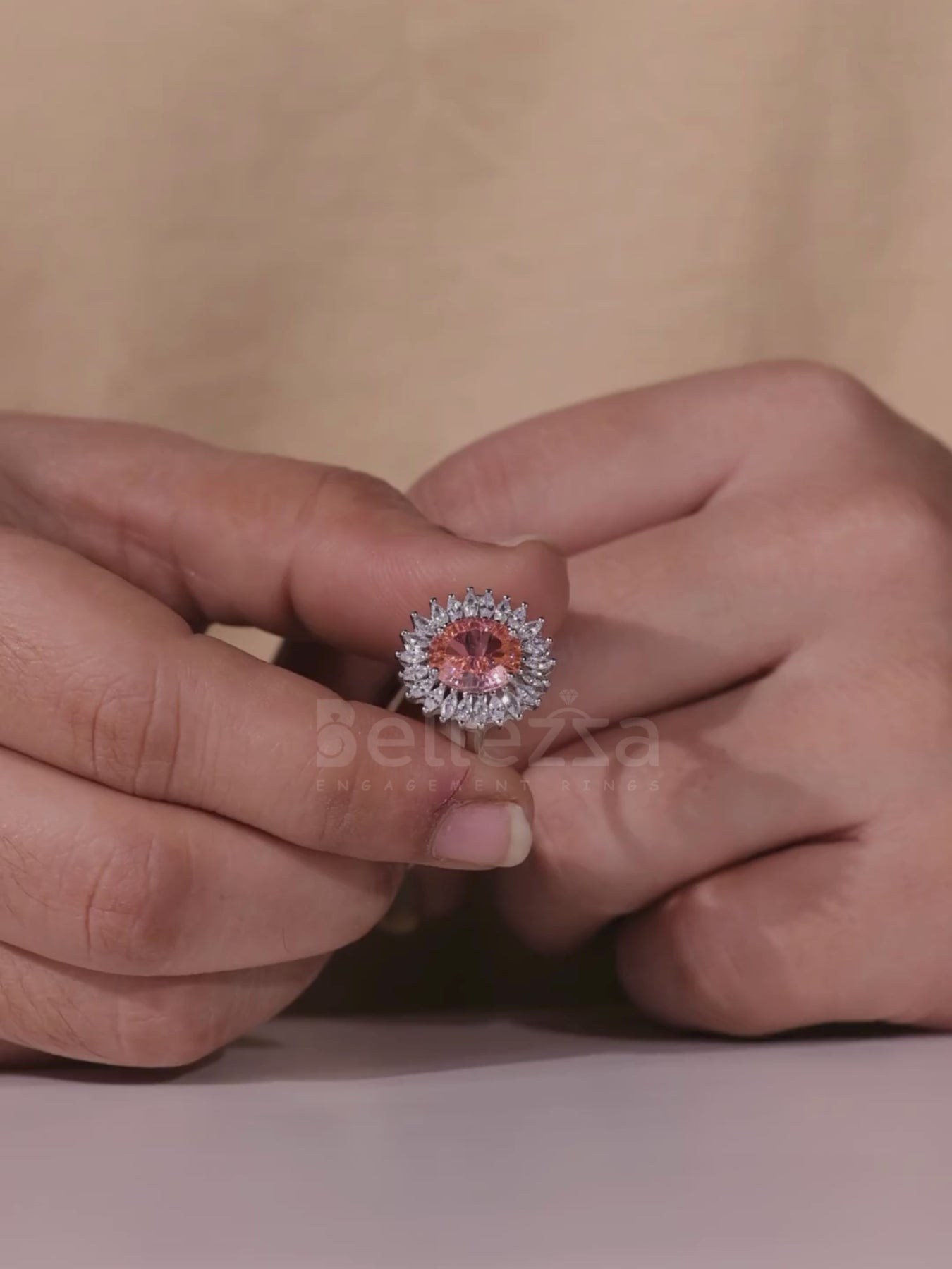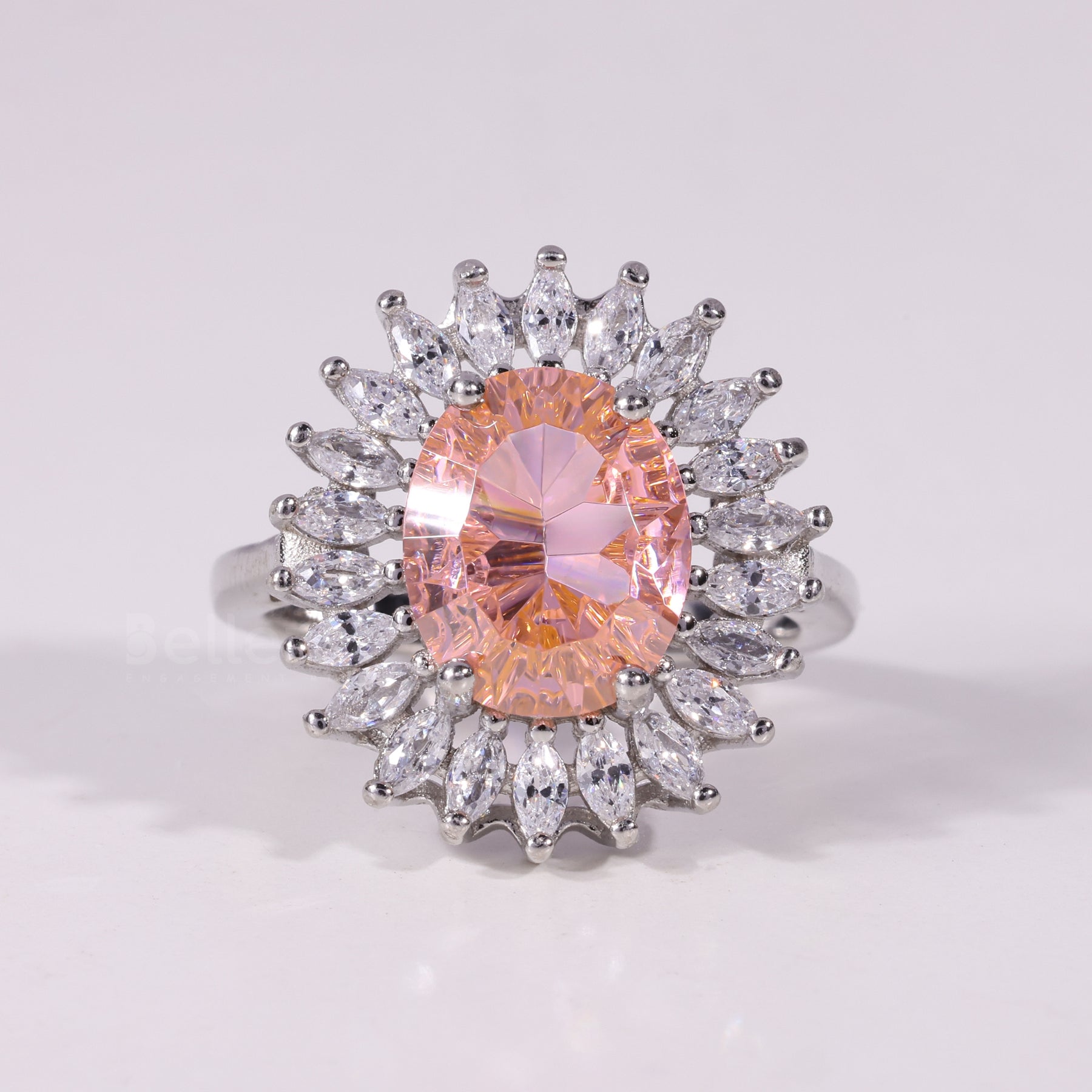 1.50CT-2.50CT Oval Cut Orangy Pink Cluster Diamond Engagement Ring