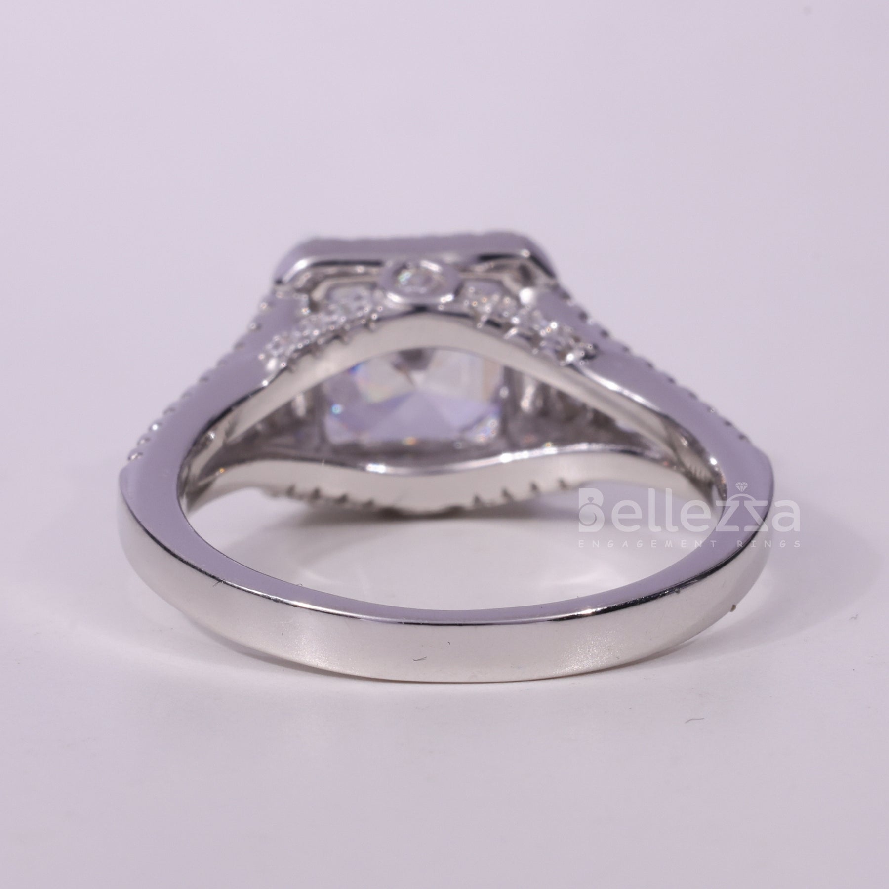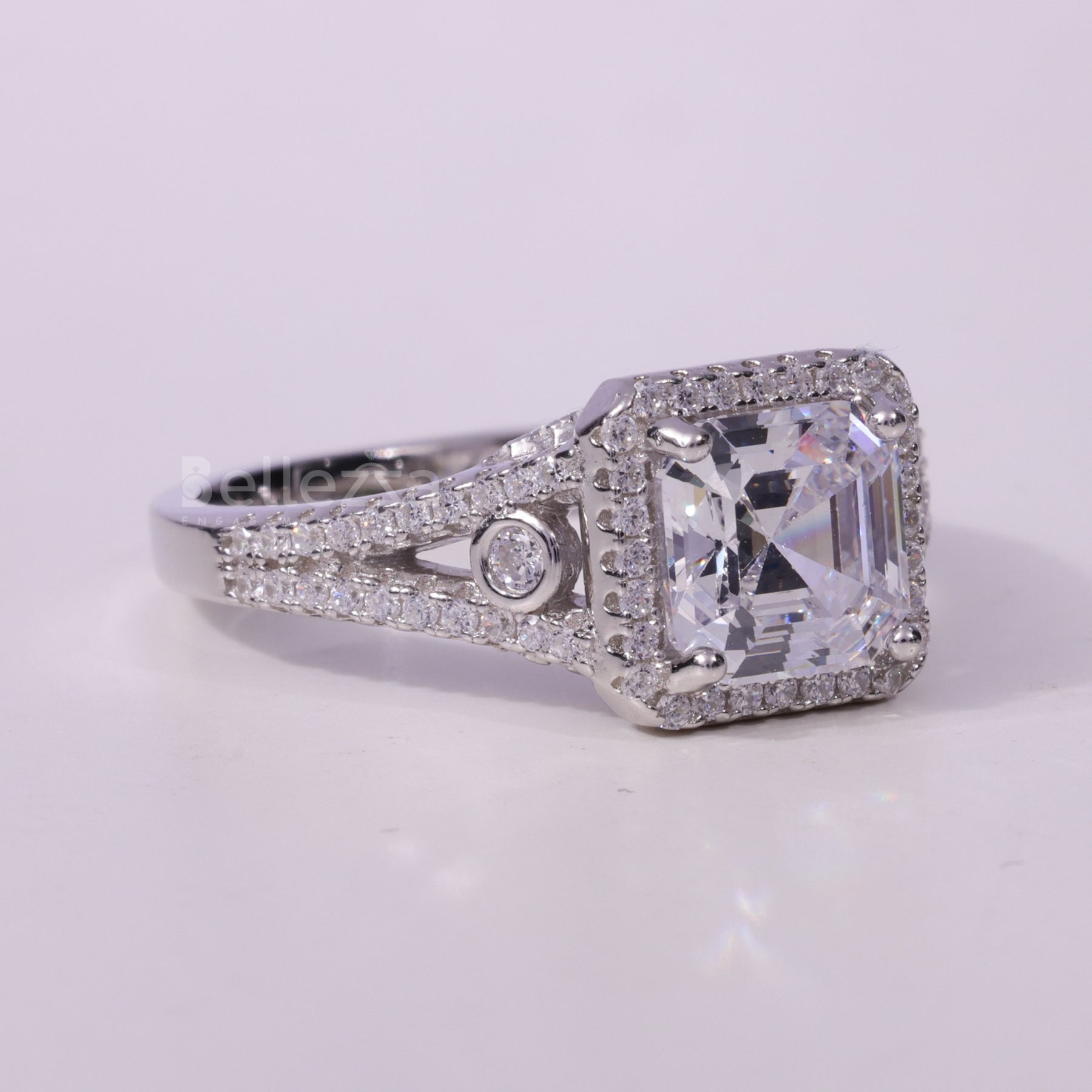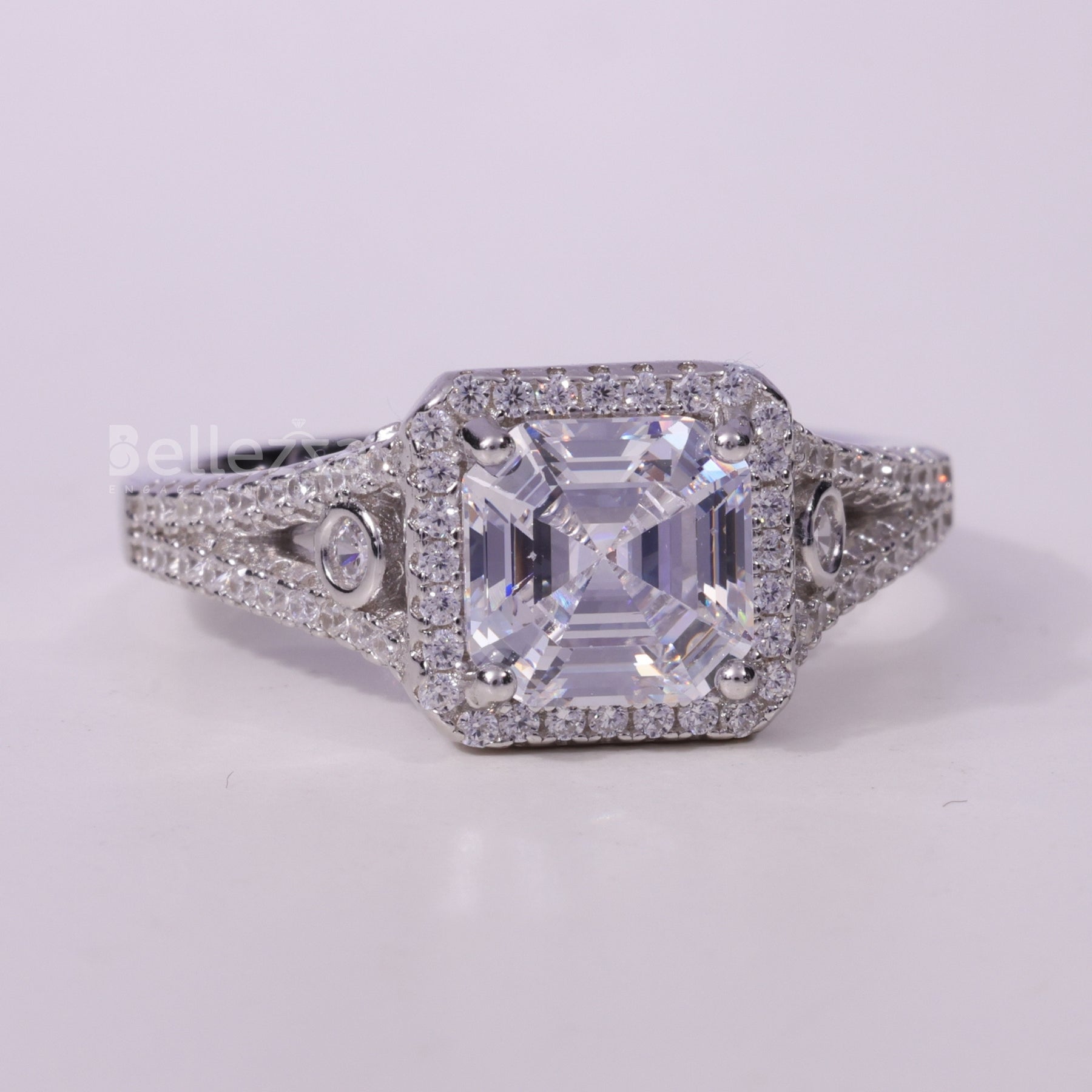 1.50CT Asscher Cut Cluster Diamond Moissanite Engagement Ring