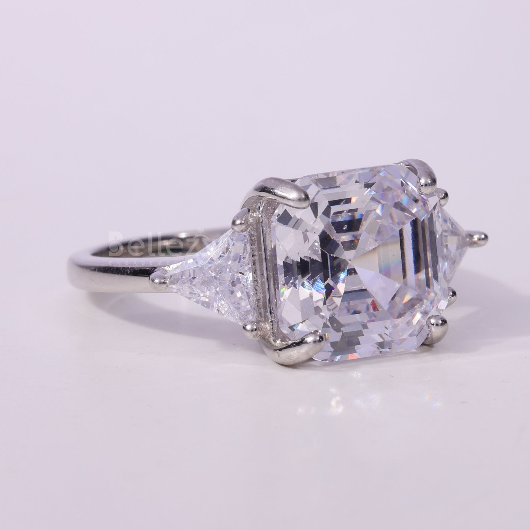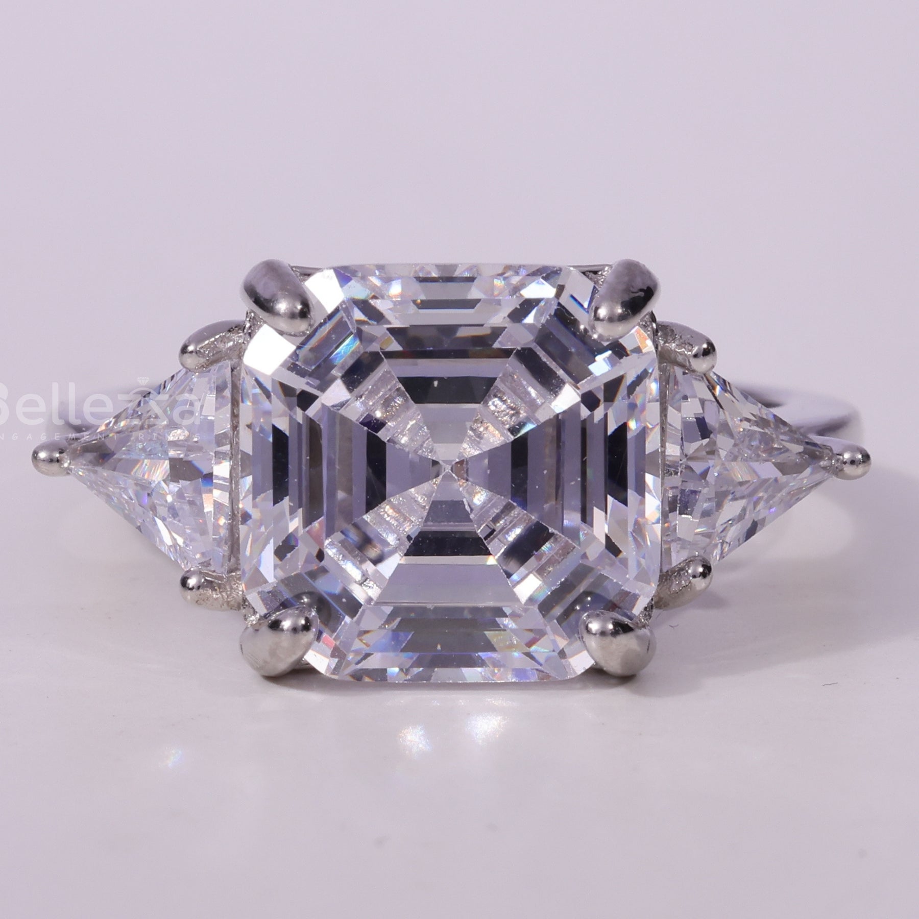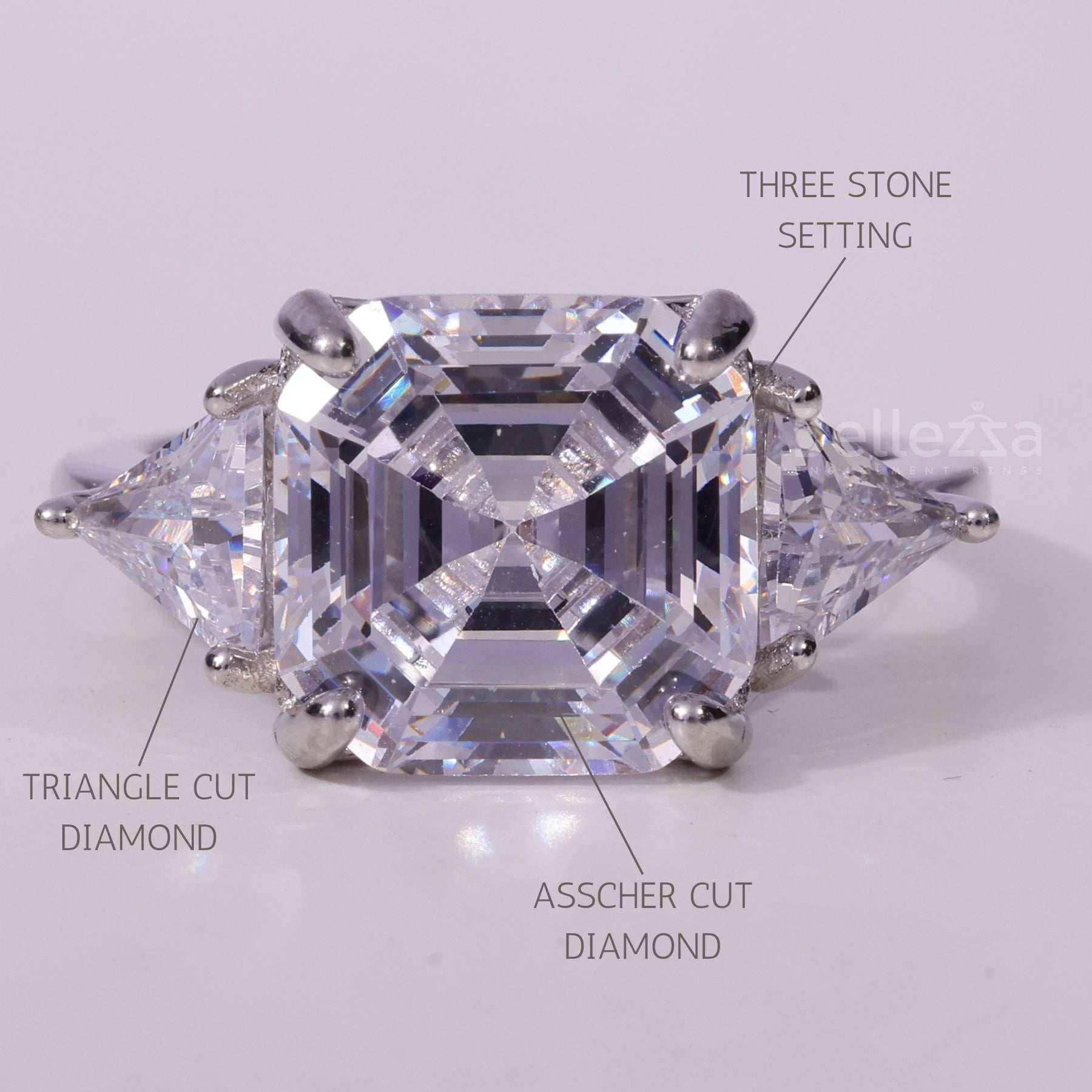 ✥The image above showcases our exquisite 1.50CT Asscher Cut Three Stone Moissanite Engagement Ring, a perfect blend of timeless elegance and modern design. Its geometric Asscher Cut center stone is flanked by two sparkling side stones, forming a classic Three Stone arrangement that symbolizes the past, present, and future of your love. Crafted with premium Moissanite, the ring offers dazzling brilliance and eco-friendly durability. The sleek and polished band highlights the center stones, creating a sophisticated Engagement Ring that stands out. Perfect for proposals, anniversaries, or milestone celebrations, this ring combines style, sparkle, and sentimental meaning. Its superior craftsmanship and radiant design ensure a piece that will be cherished for a lifetime.