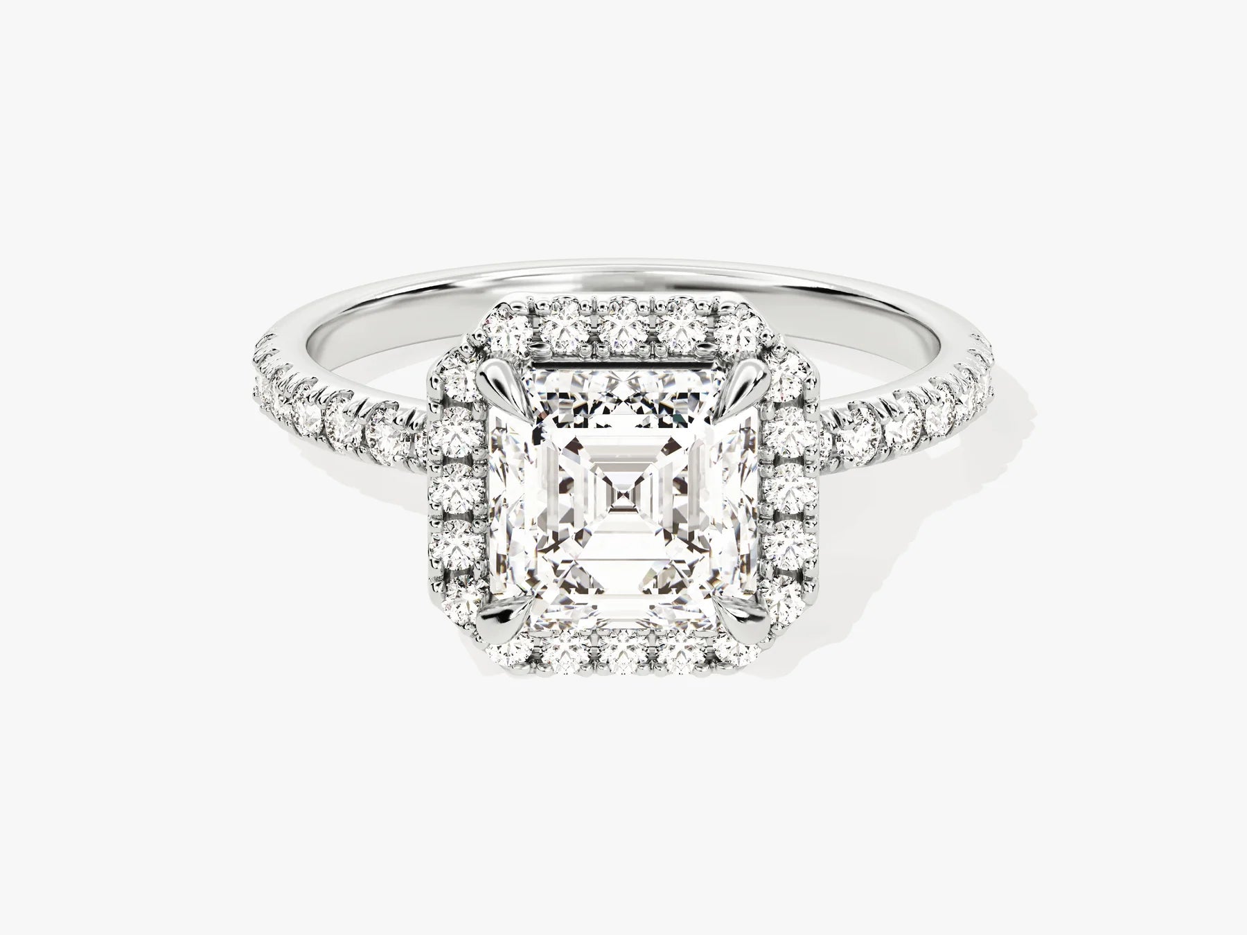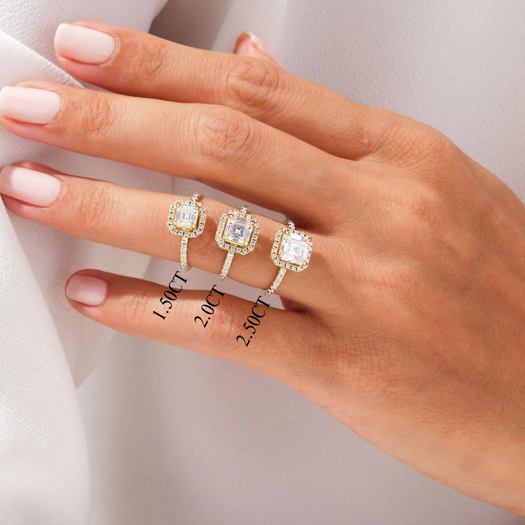 1.50CT Asscher Diamond Halo Pave Setting Moissanite Engagement Ring