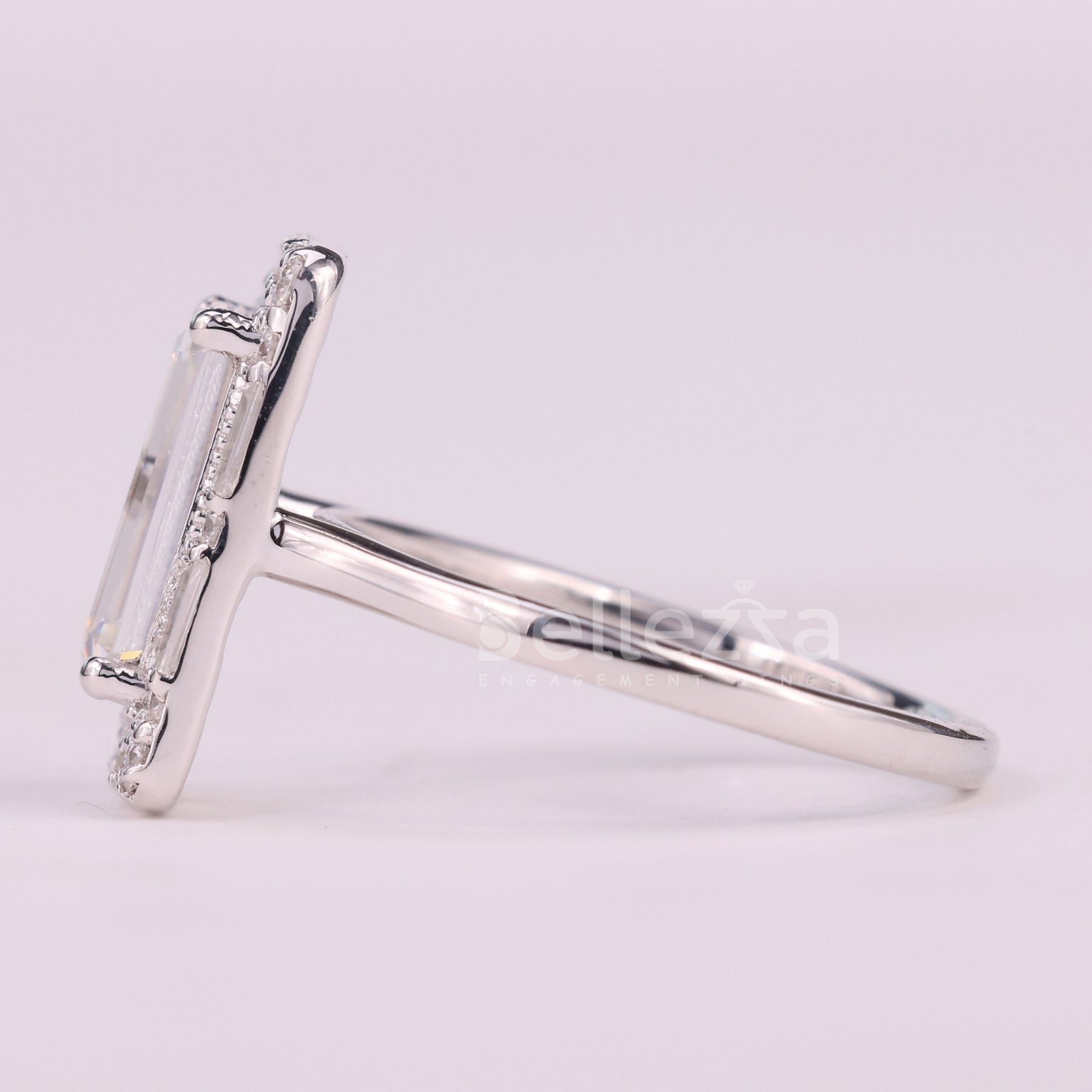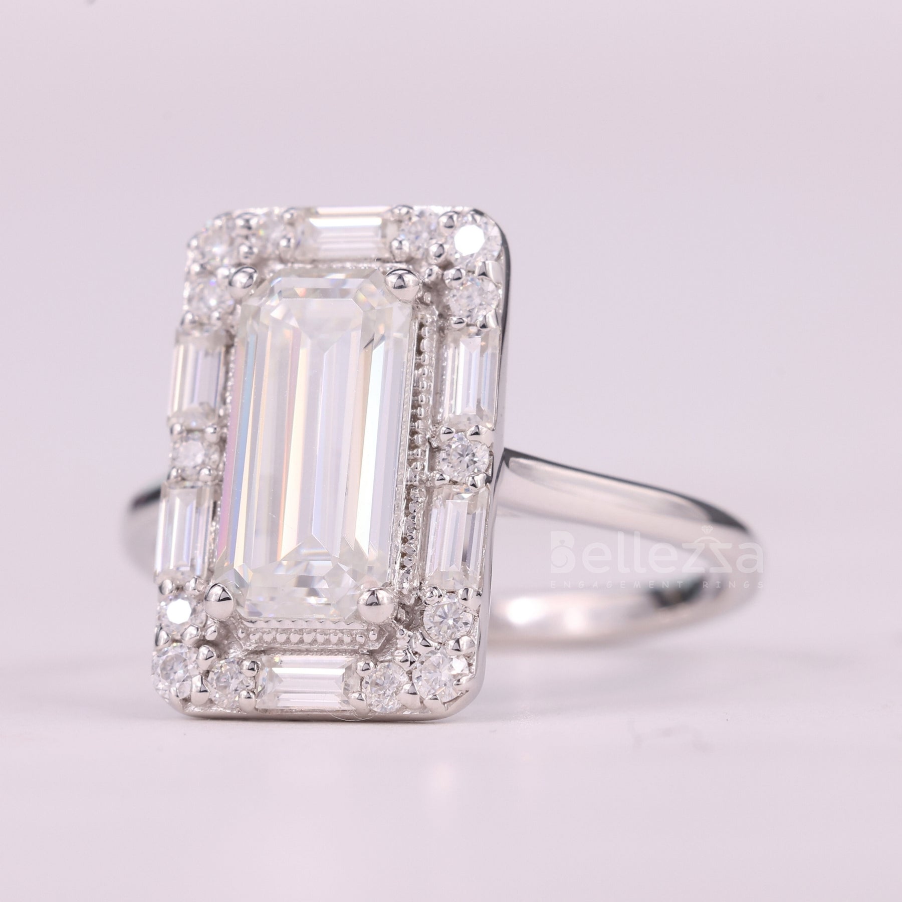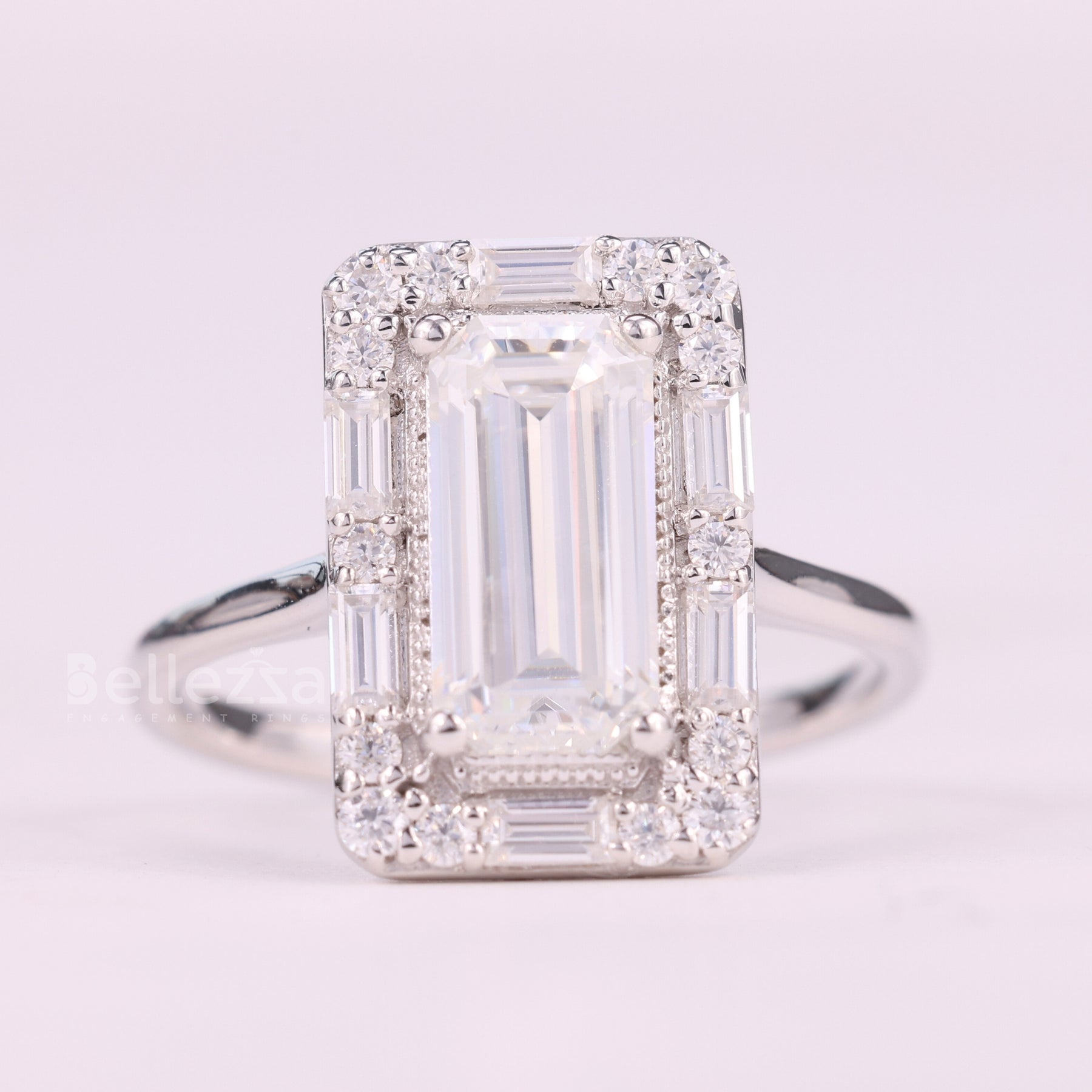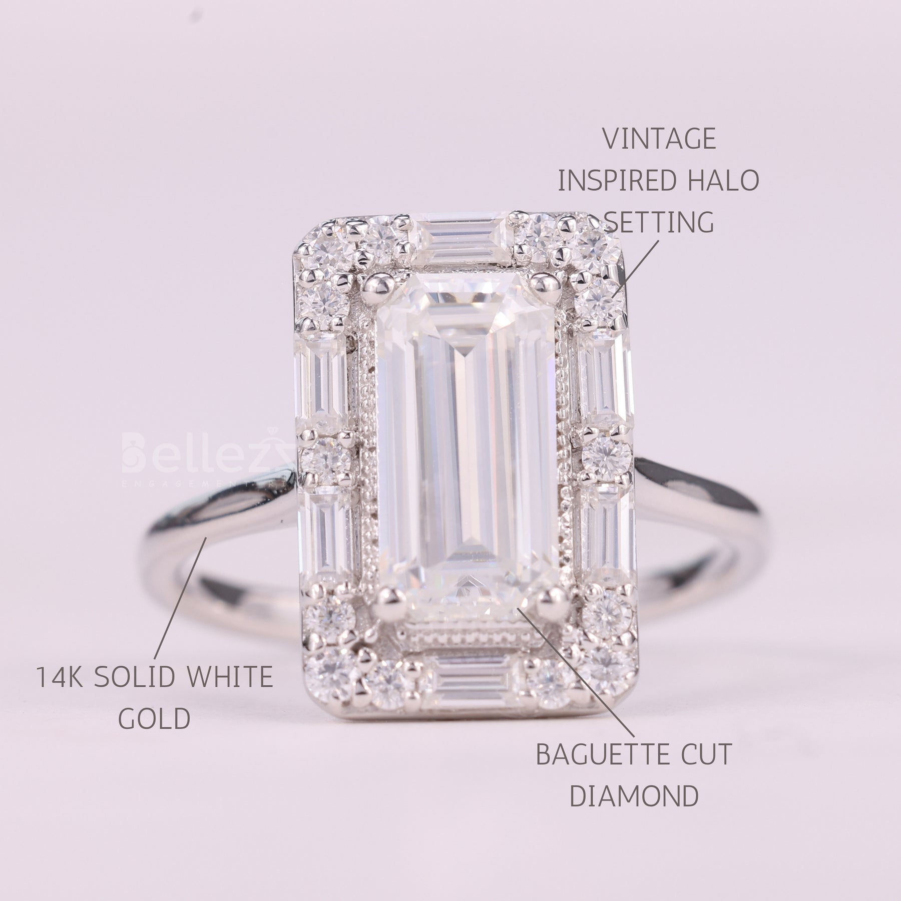 1.50CT Baguette Cut Halo Cluster Diamond Moissanite Engagement Ring