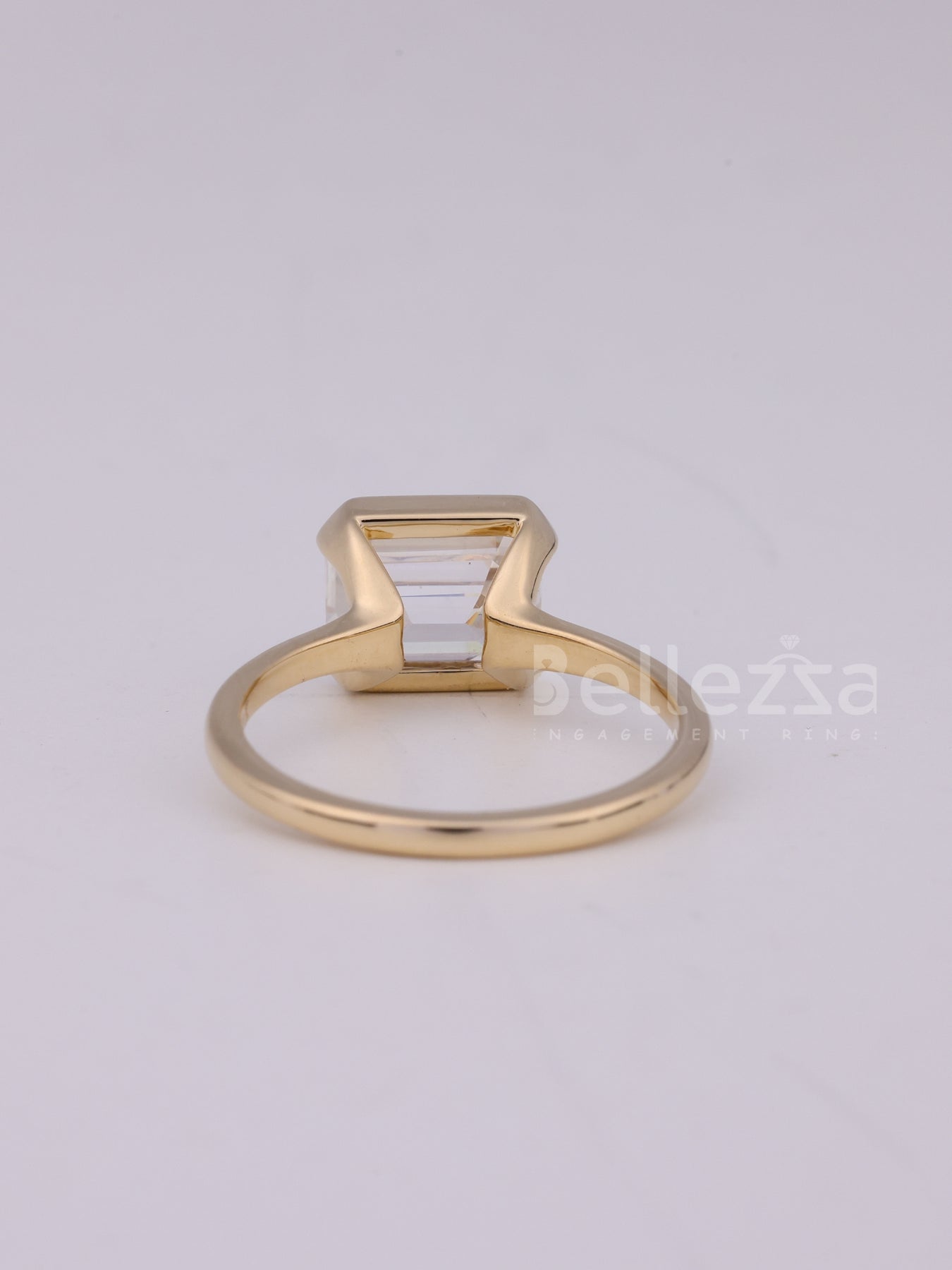 1.50CT East West Emerald Cut Half Bezel Engagement Ring