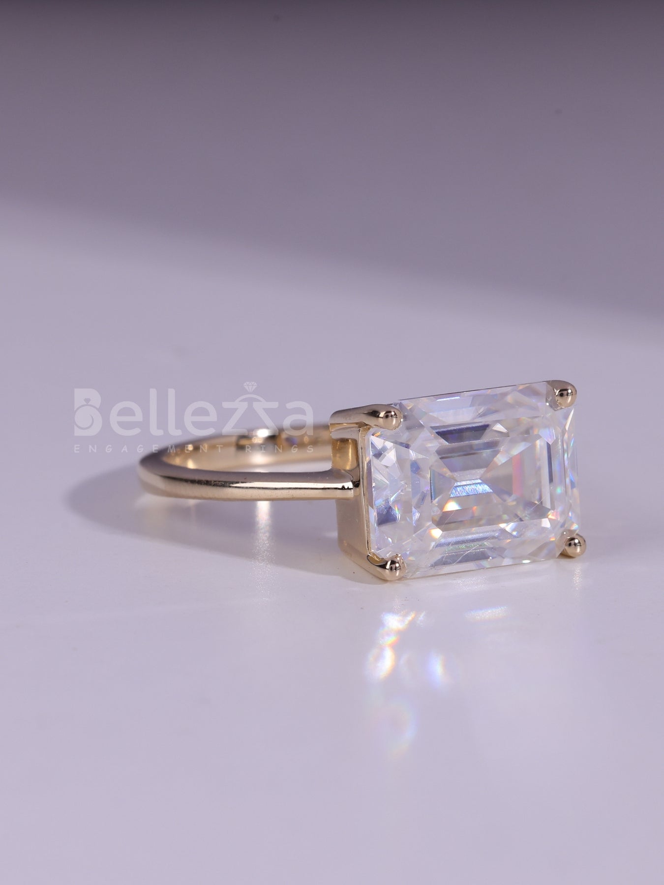 3.0CT East West Emerald Cut Solitaire Engagement Ring