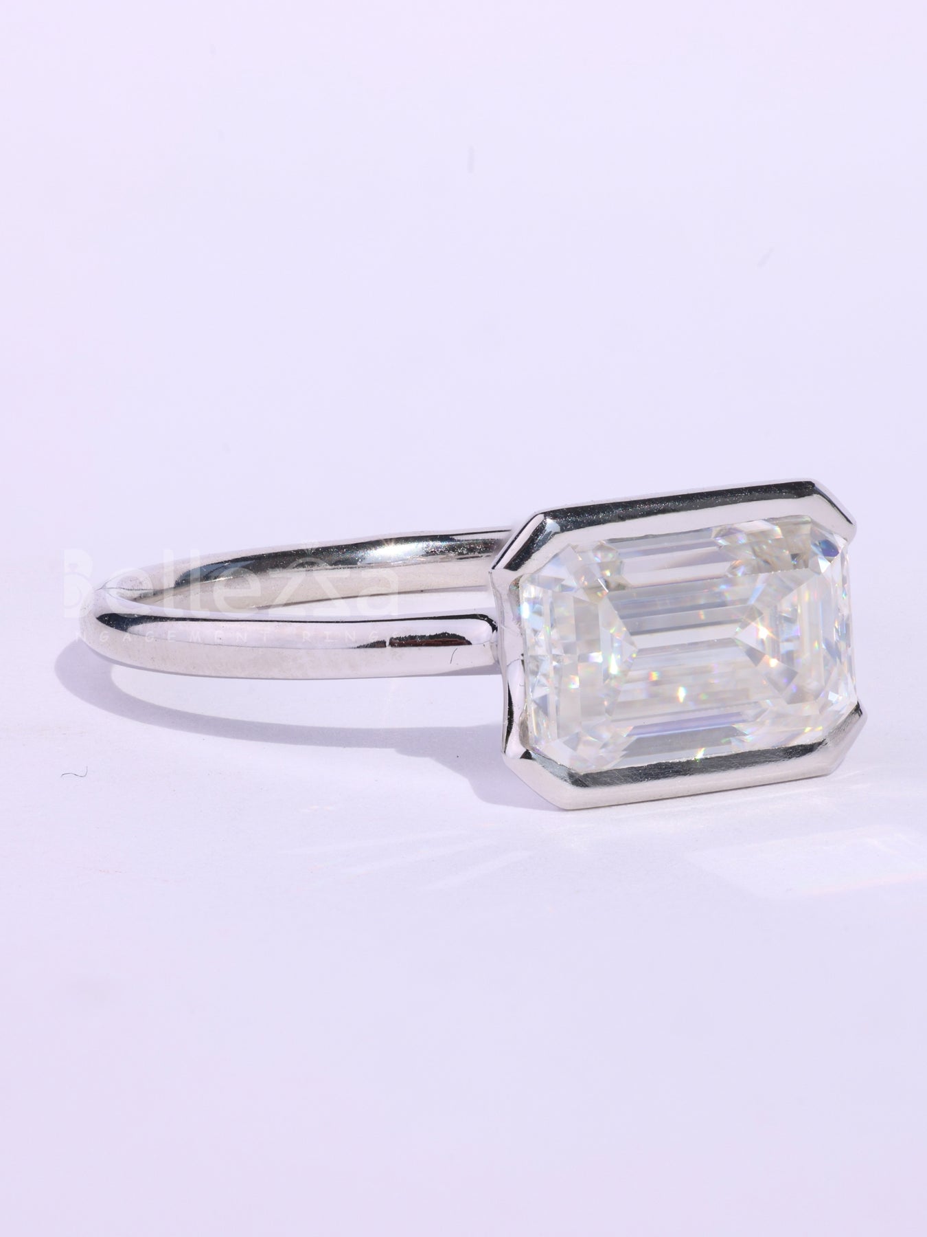 1.50CT East-West Emerald Cut Solitaire Moissanite Engagement Ring