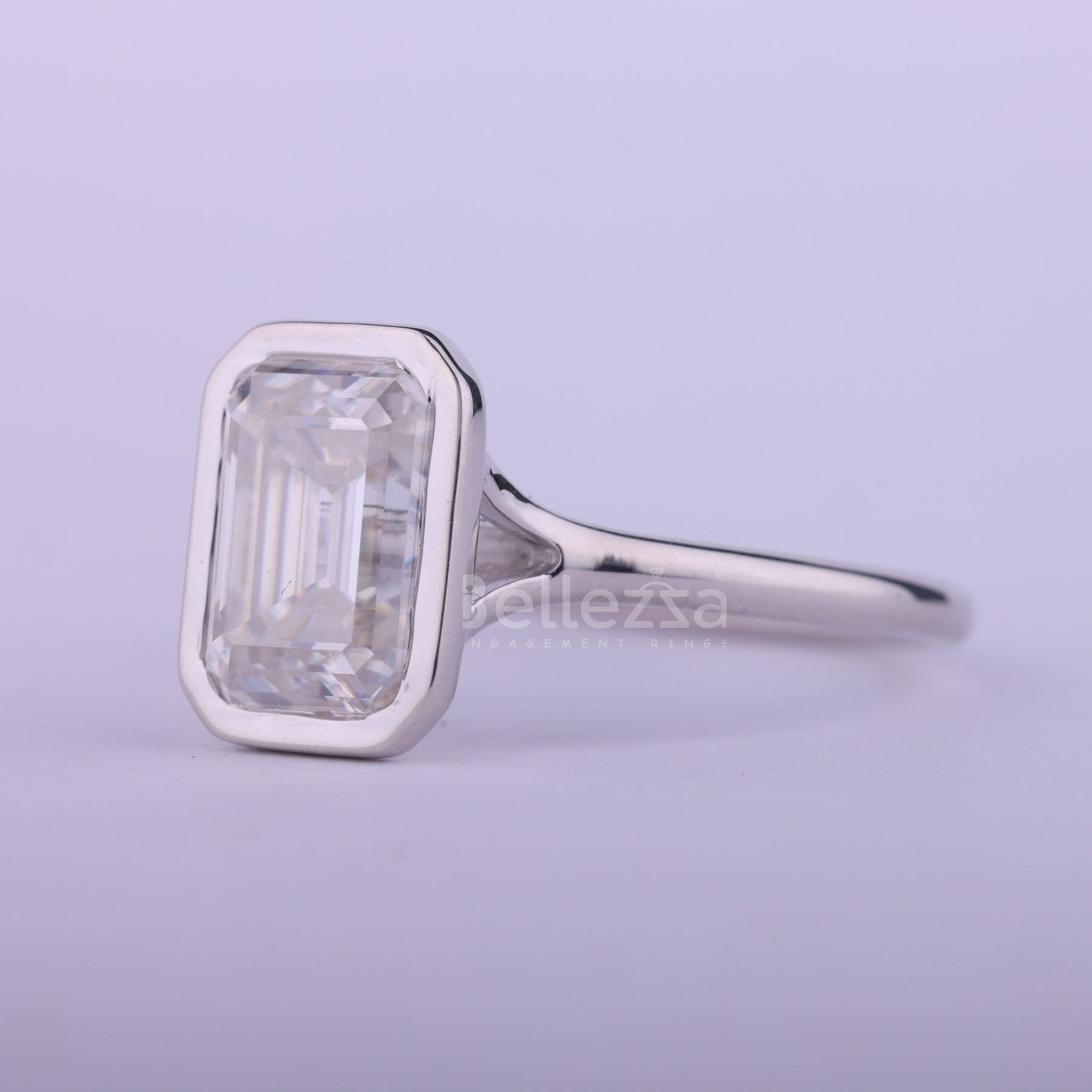 1.50CT Emerald Cut Bezel Setting Moissanite Engagement Ring