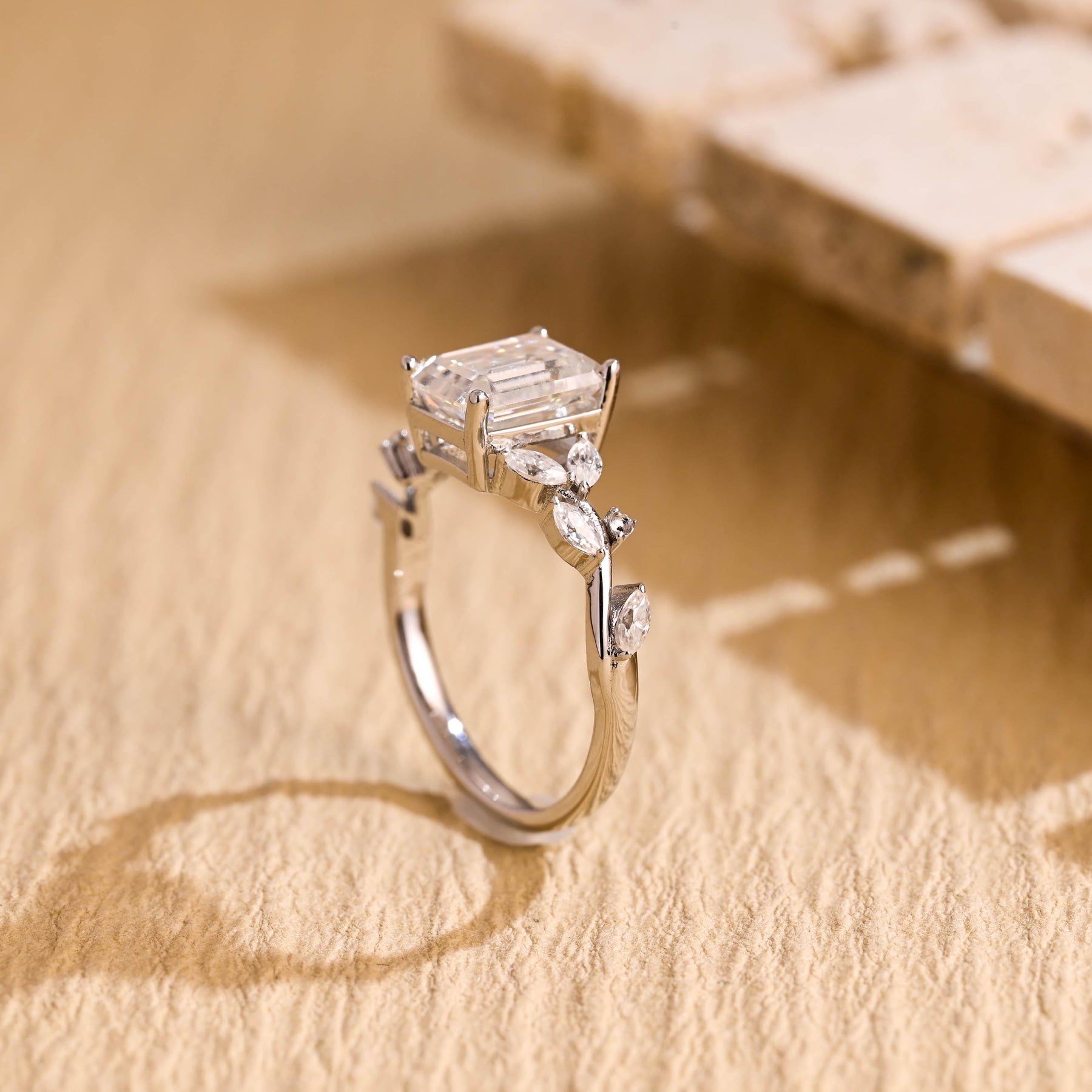 1.50CT Emerald Cut Nature Inspired Moissanite Engagement Ring
