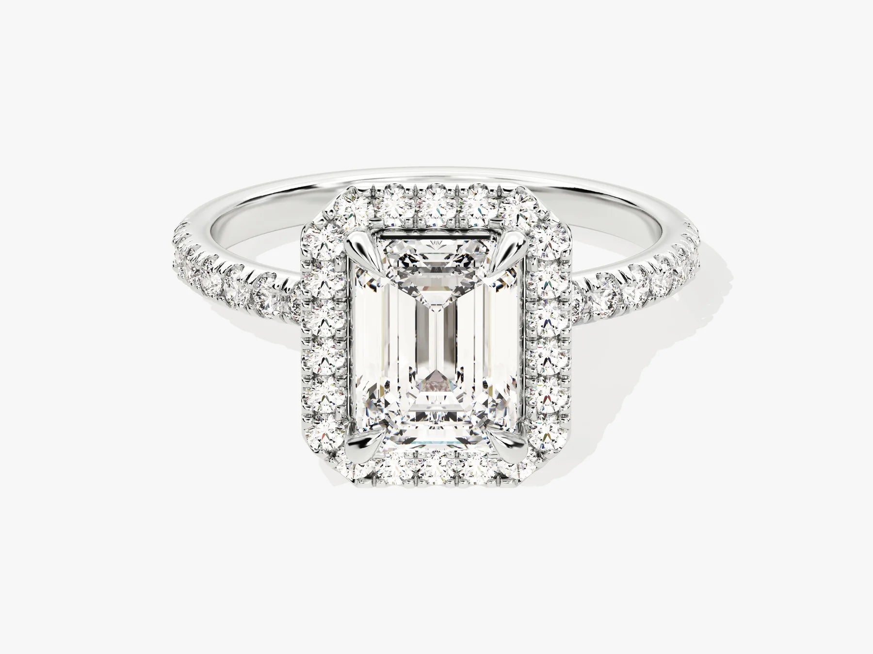 1.50CT Emerald Diamond Halo Pave Setting Moissanite Engagement Ring