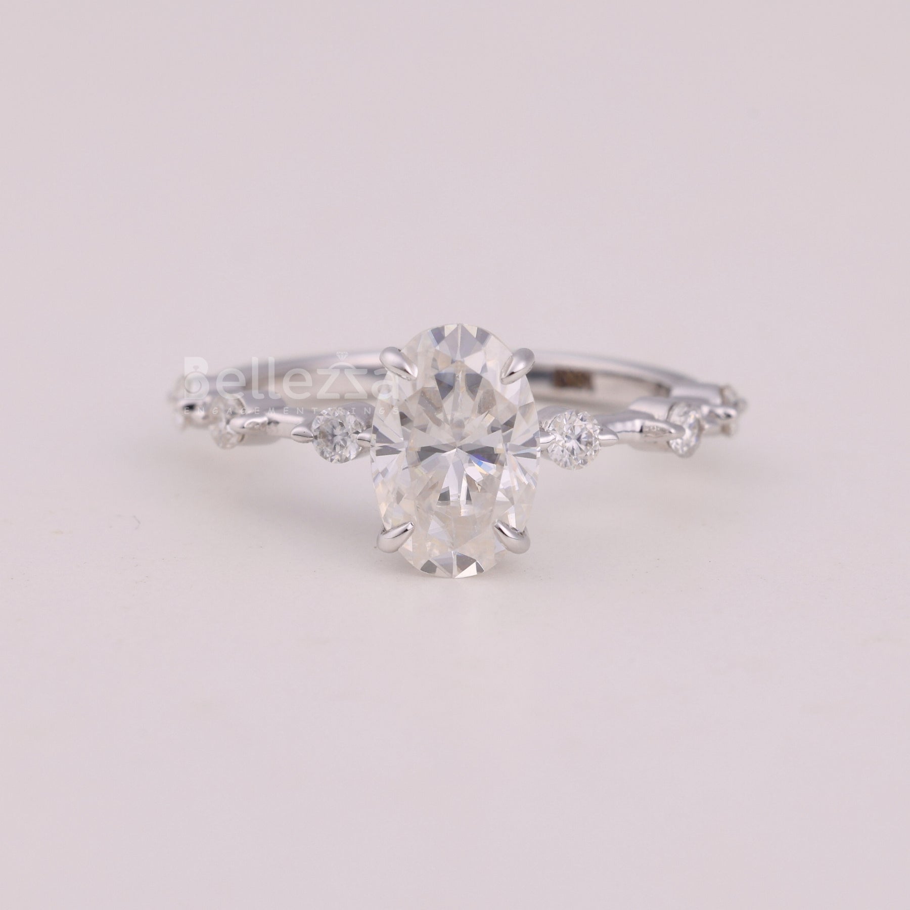1.50CT Oval Cut Petite Pave Setting Engagement Ring