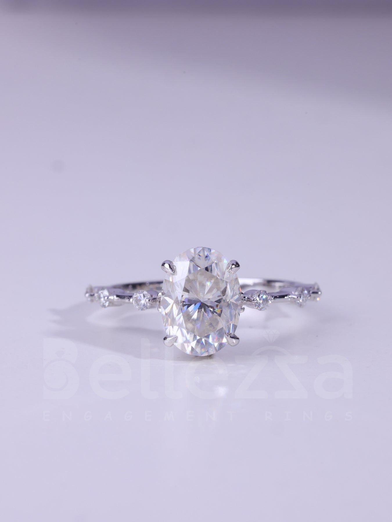 1.50CT Oval Cut Petite Pave Setting Moissanite Engagement Ring