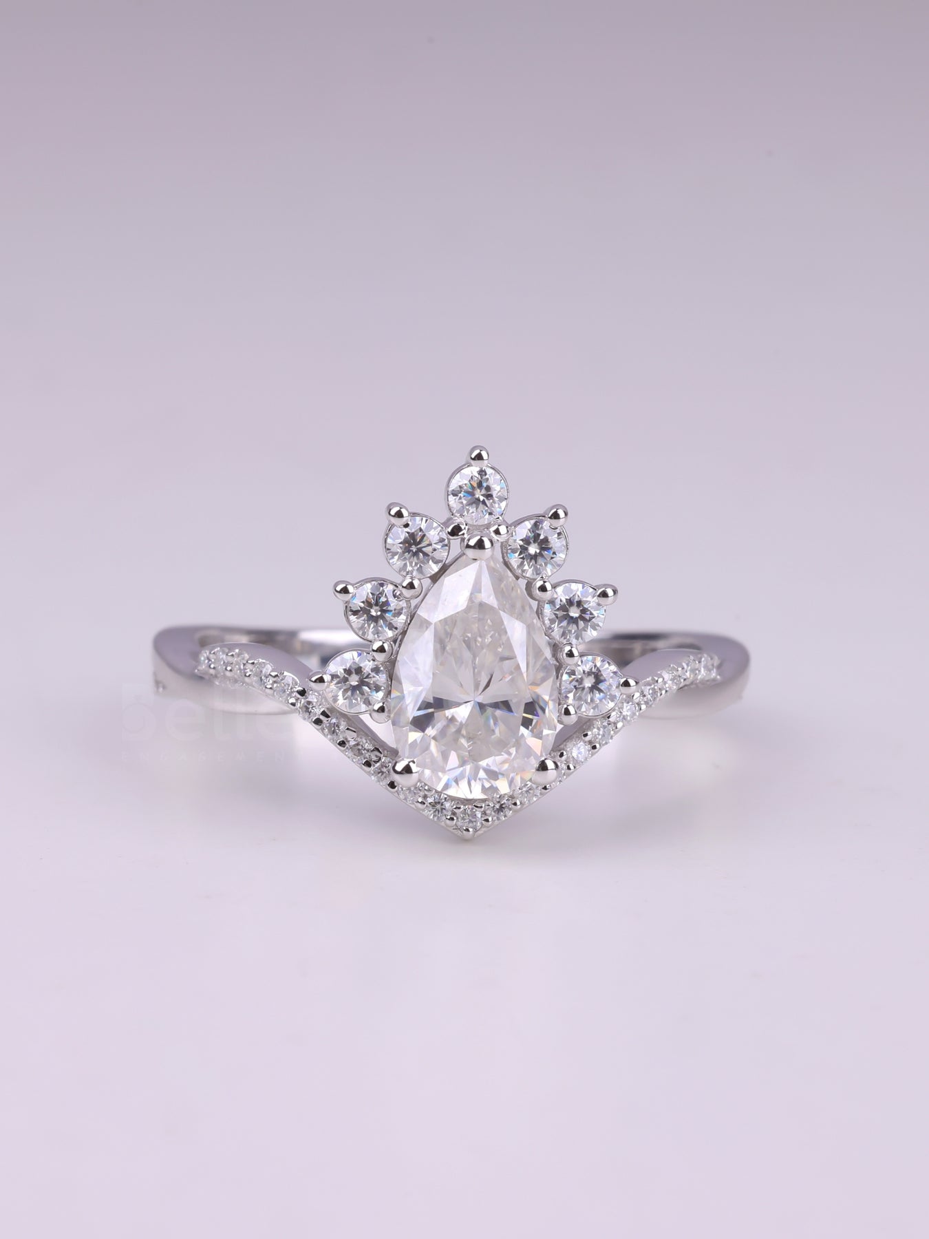 1.50CT Pear Cut Curved Moissanite Cluster Engagement Ring