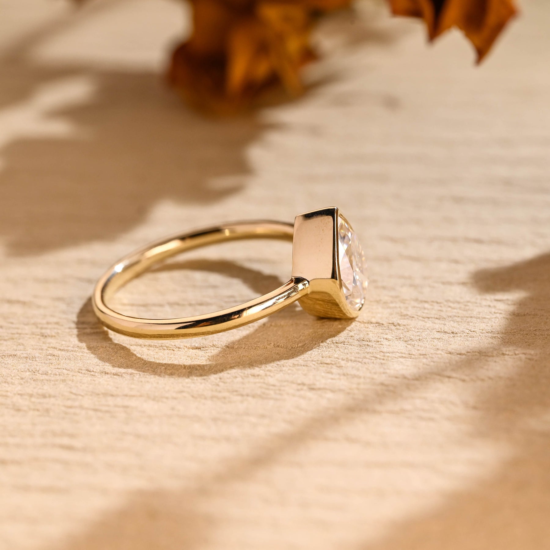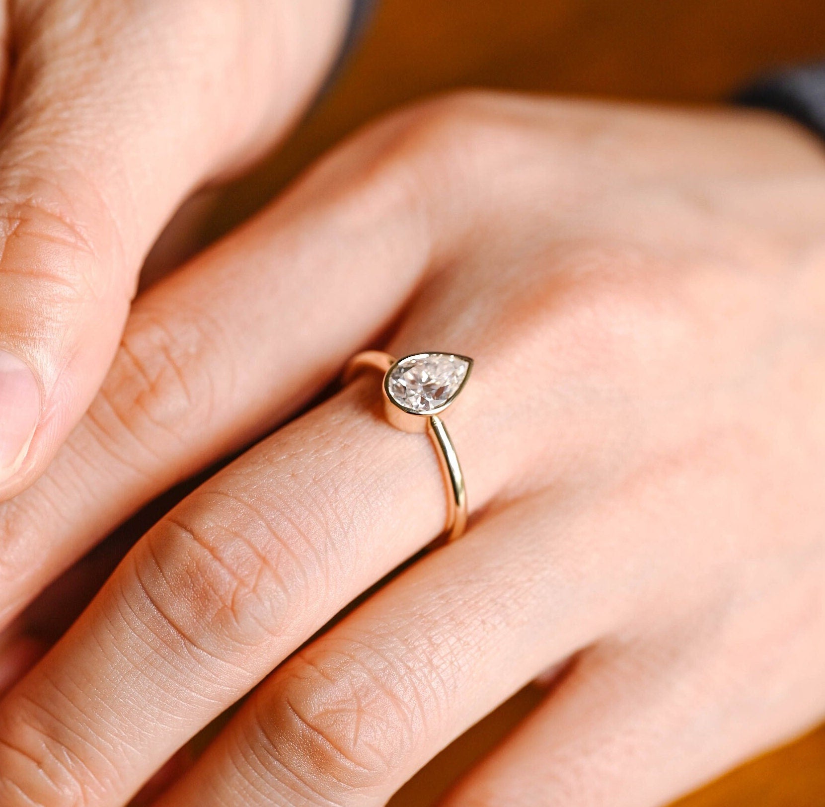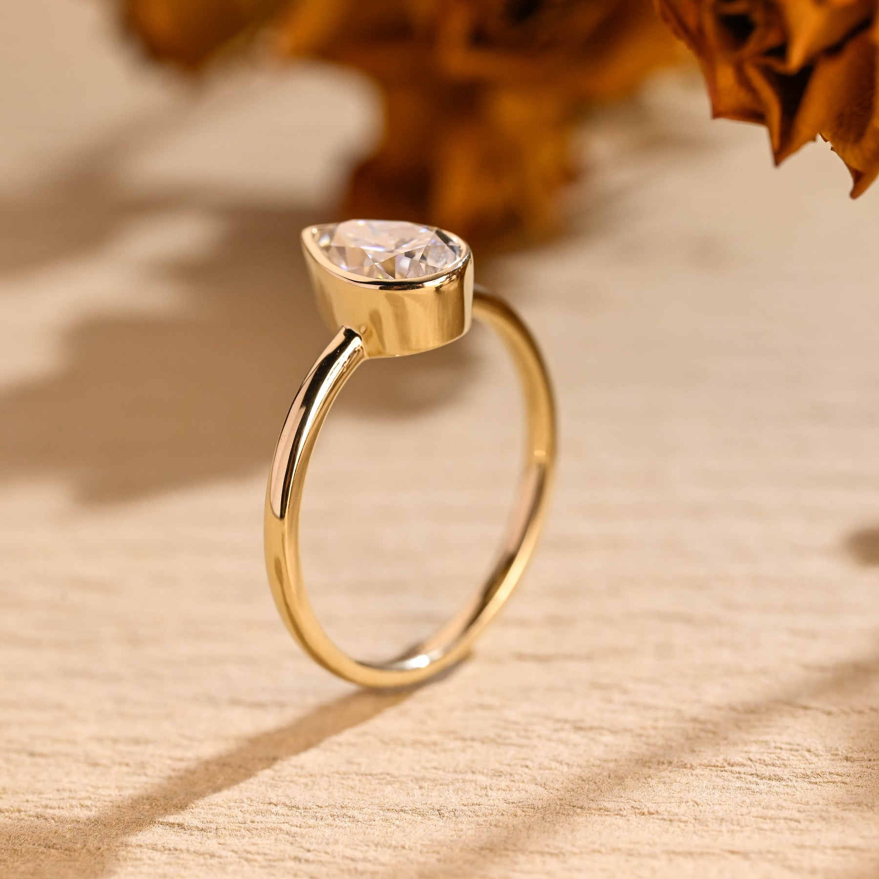 1.50CT Pear Diamond Bezel Solitaire Moissanite Engagement Ring