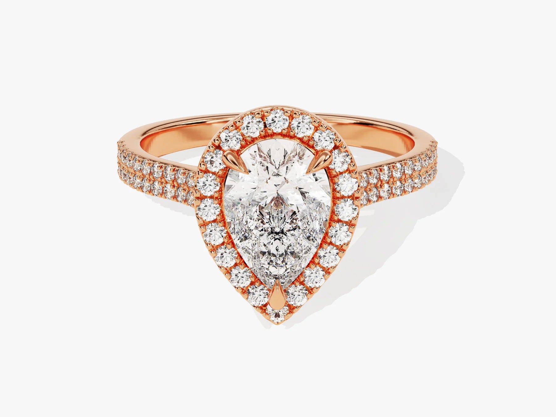 1.50CT Pear Diamond Double Shank Halo Moissanite Engagement Ring