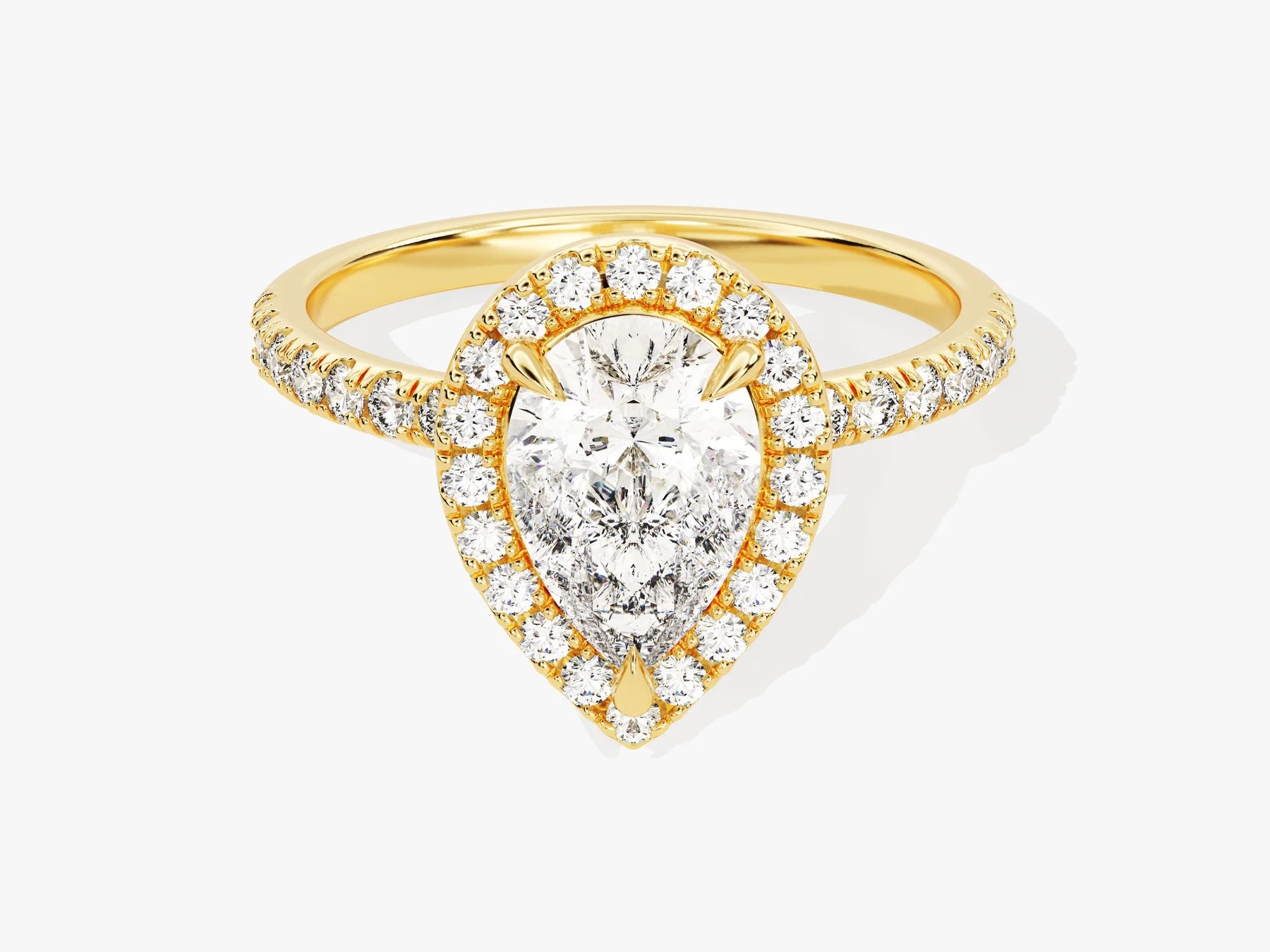 1.50CT Pear Diamond Halo Pave Setting Moissanite Engagement Ring