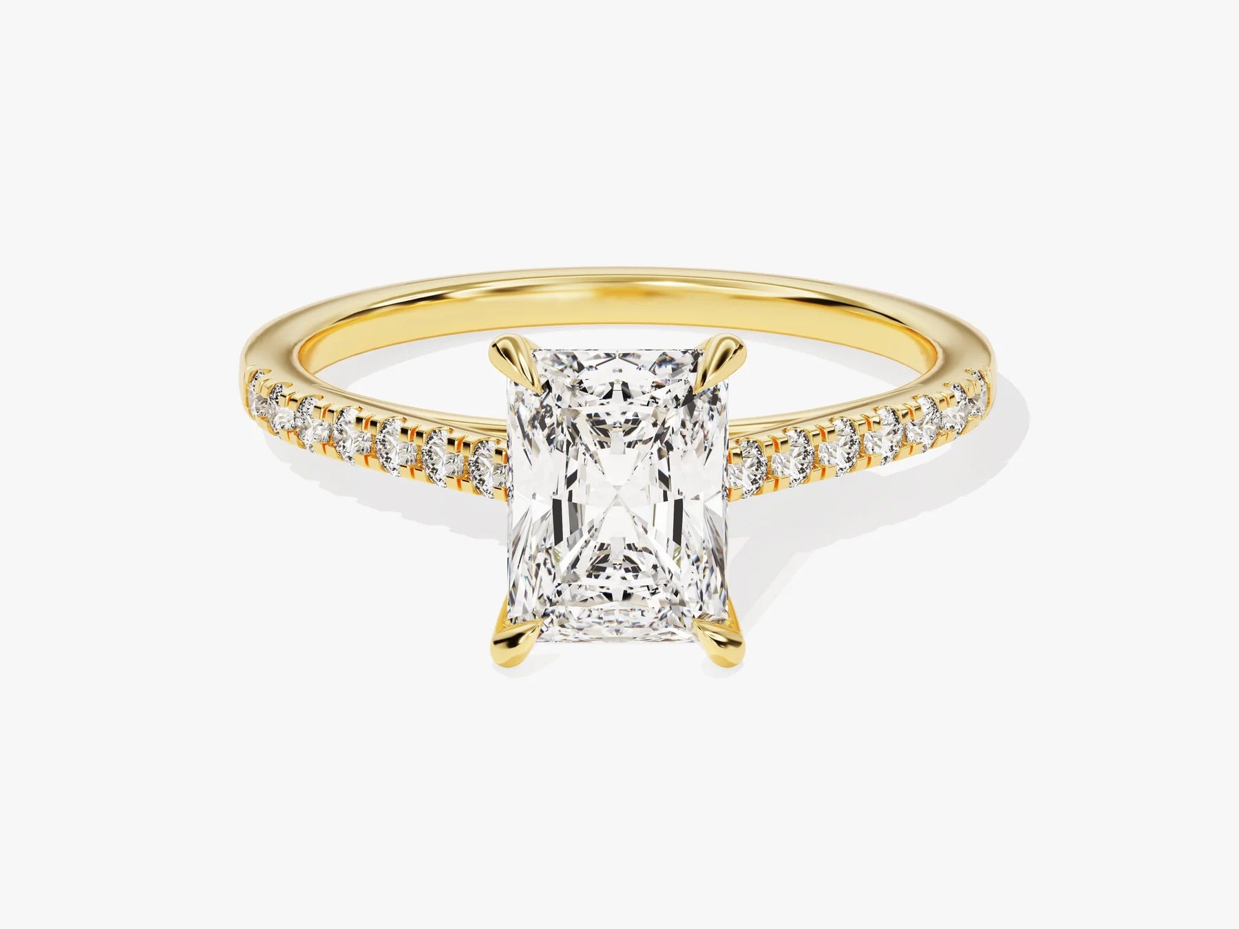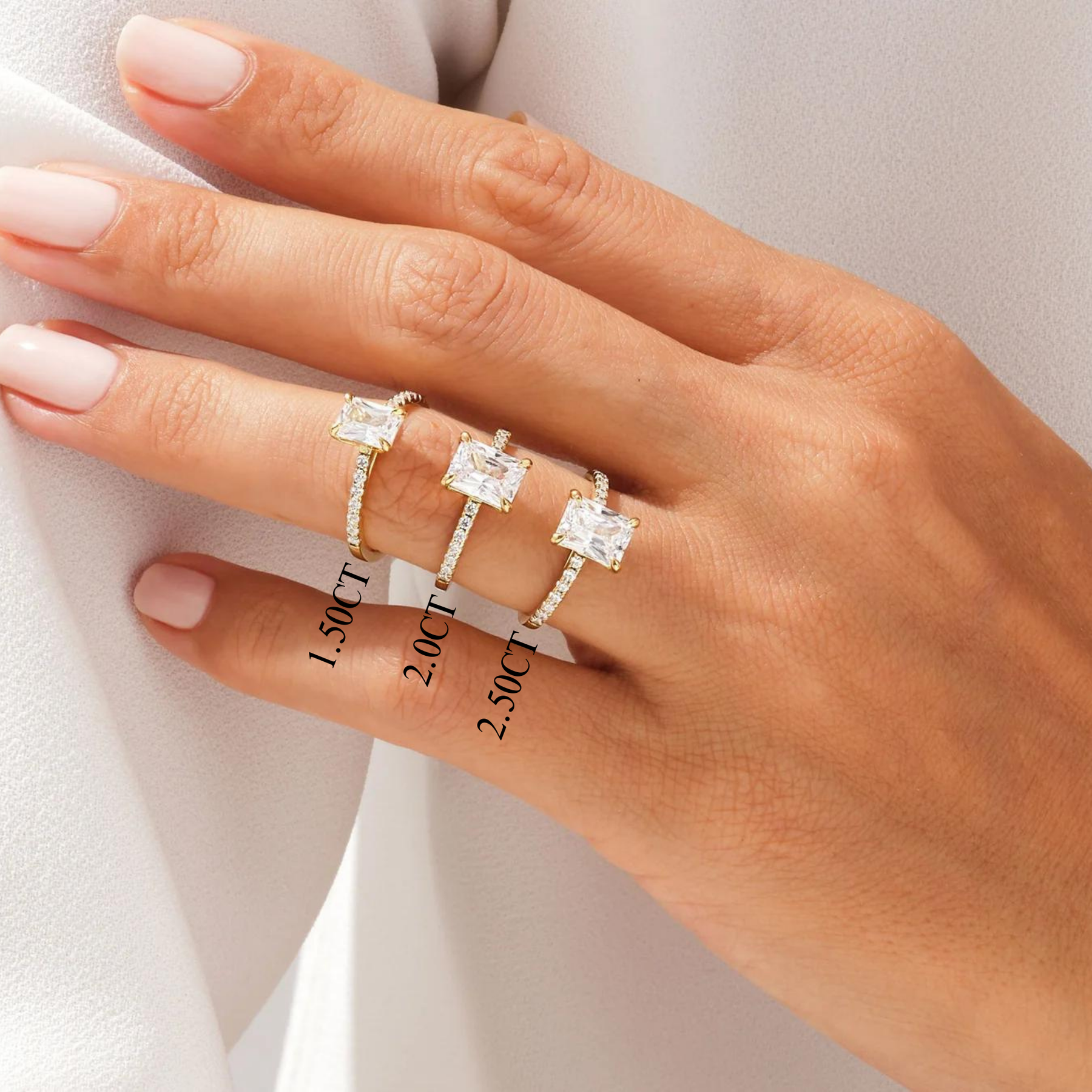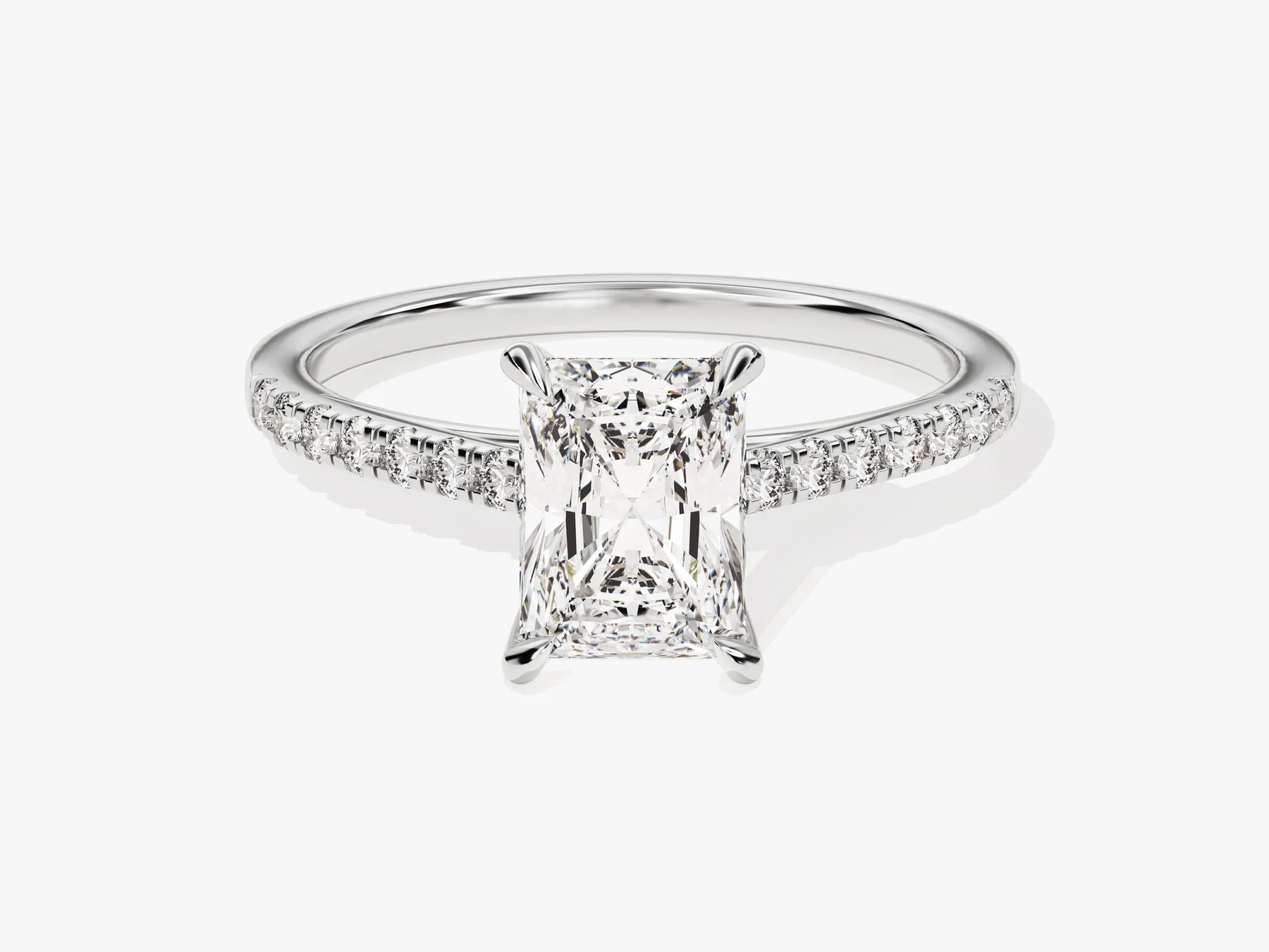 ✥ This stunning 1.50CT Radiant Cut Moissanite Engagement Ring with a Pave Setting combines brilliance and elegance in a timeless design. The centerpiece features a radiant cut moissanite, known for its beautiful rectangular shape and dazzling facets that offer exceptional sparkle and fire. The pave setting, with delicate stones intricately placed along the band, adds a touch of sophistication and amplifies the overall brilliance of the ring. Perfect for those seeking a luxurious yet affordable alternative to traditional diamonds, this radiant cut engagement ring is a modern and breathtaking symbol of love and commitment.
