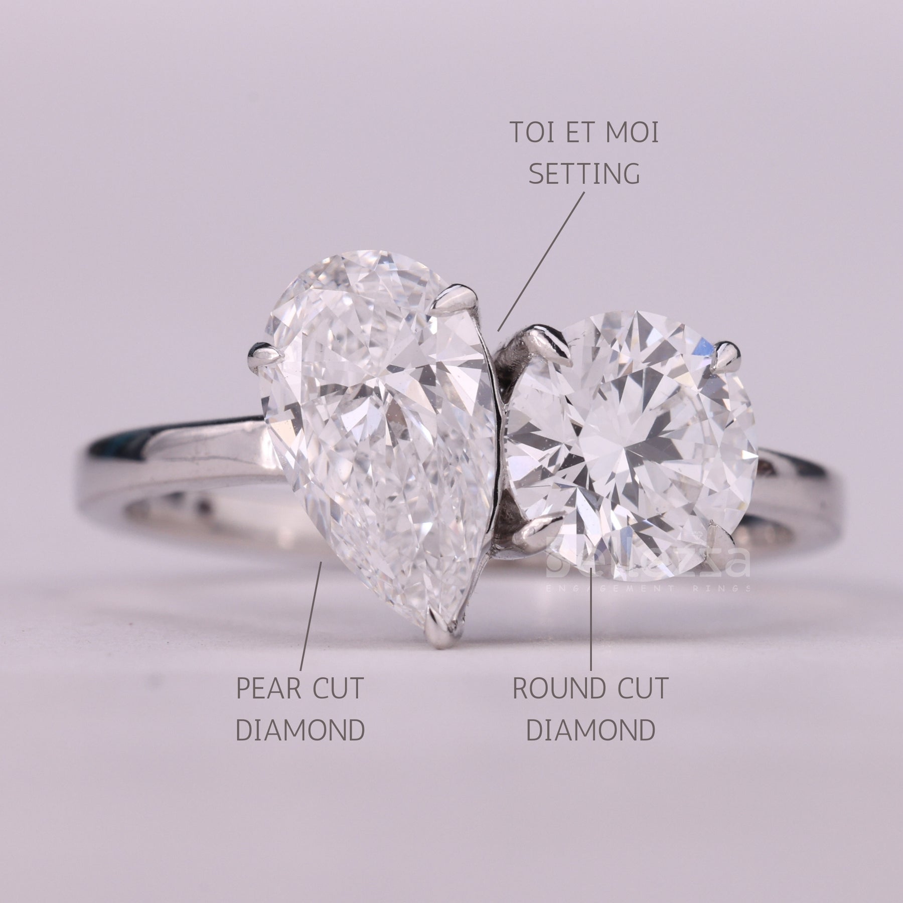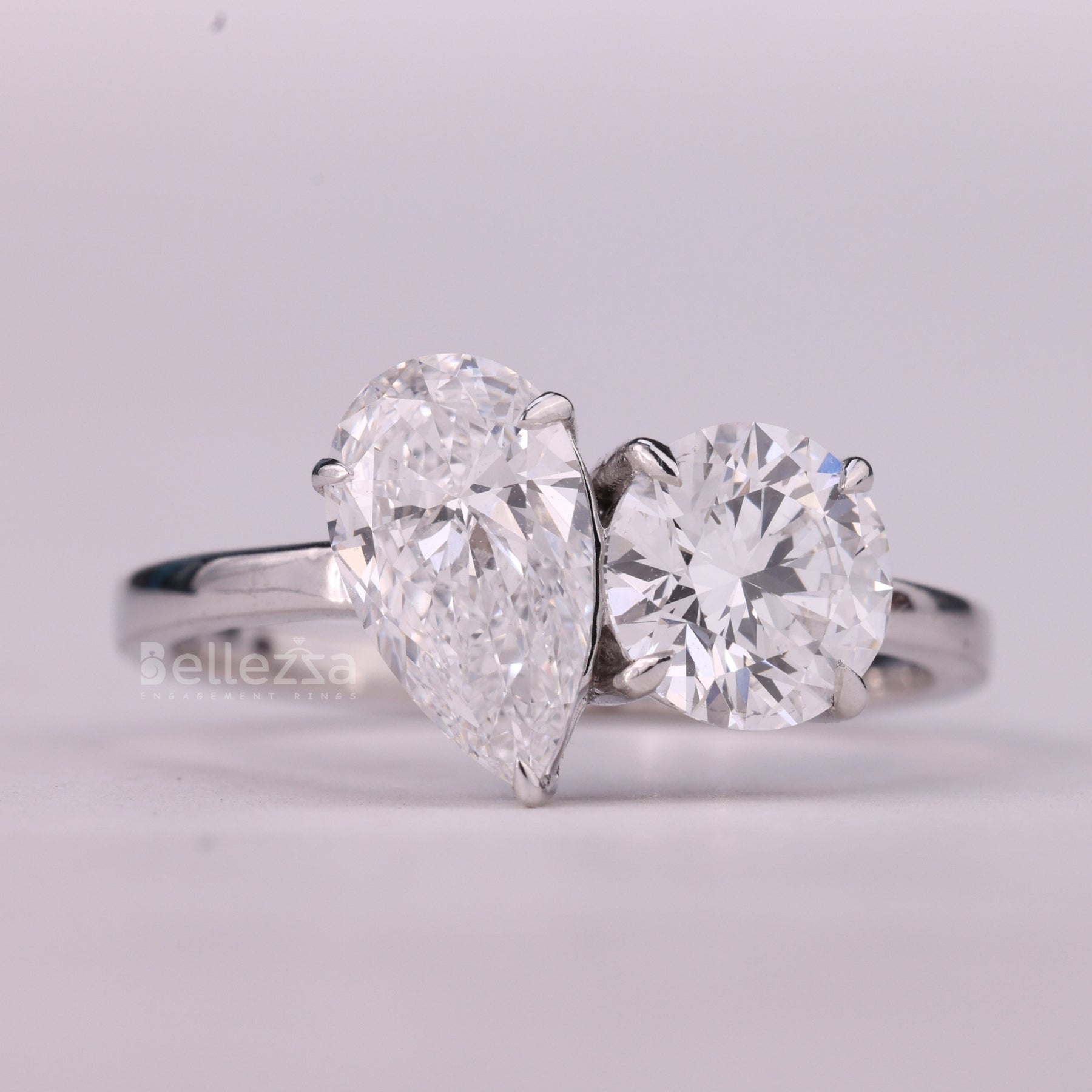 1.50CTW Pear & Round Cut Toi Et Moi Moissanite Engagement Ring