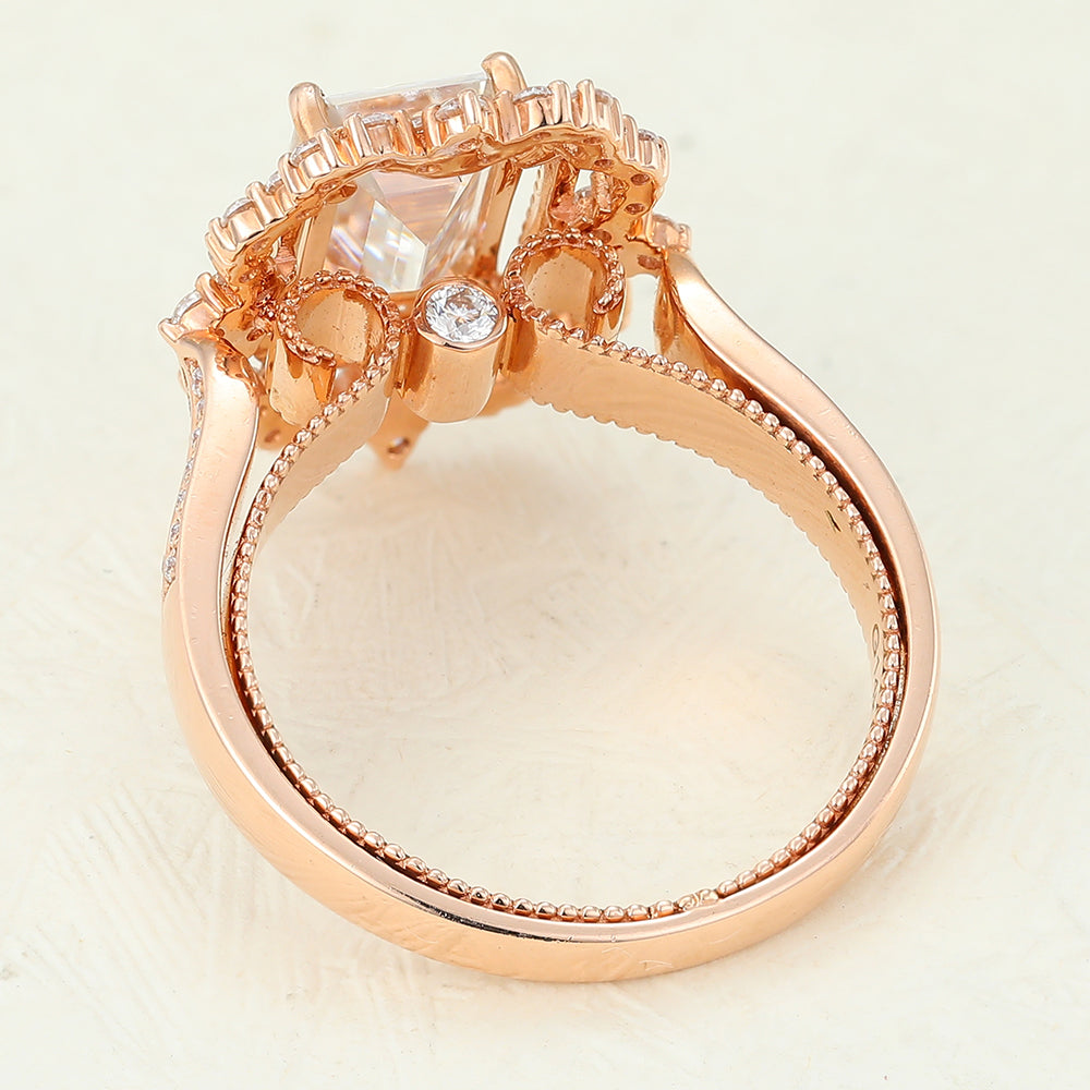 1.6 CT Emerald Shaped Moissanite Cluster Halo Engagement Ring