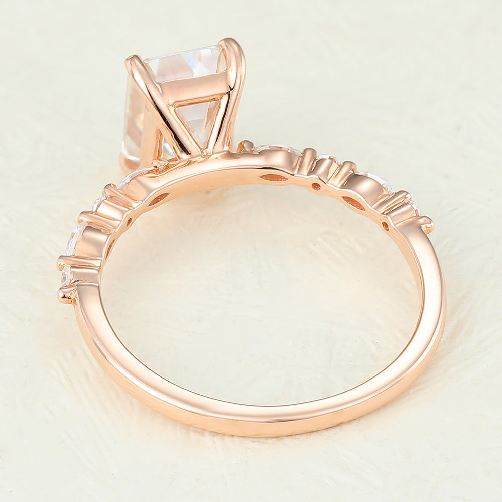 1.60 CT Emerald Shaped Moissanite Pave Setting Engagement Ring