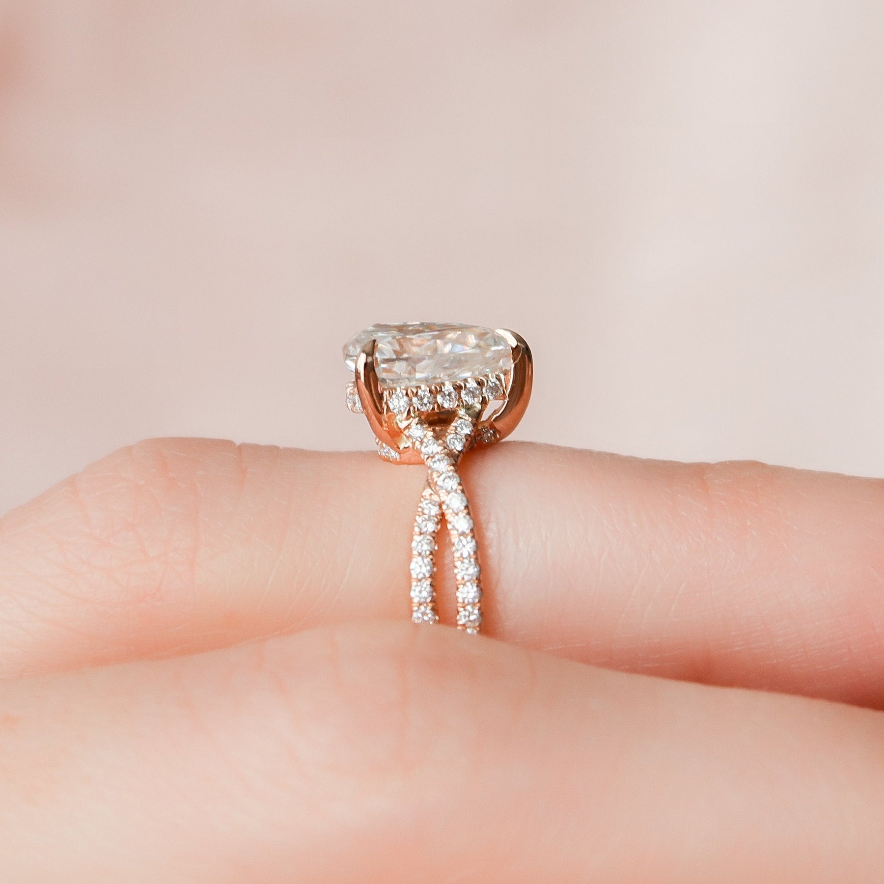 1.0CT Pear Cut Split Shank Moissanite Engagement Ring