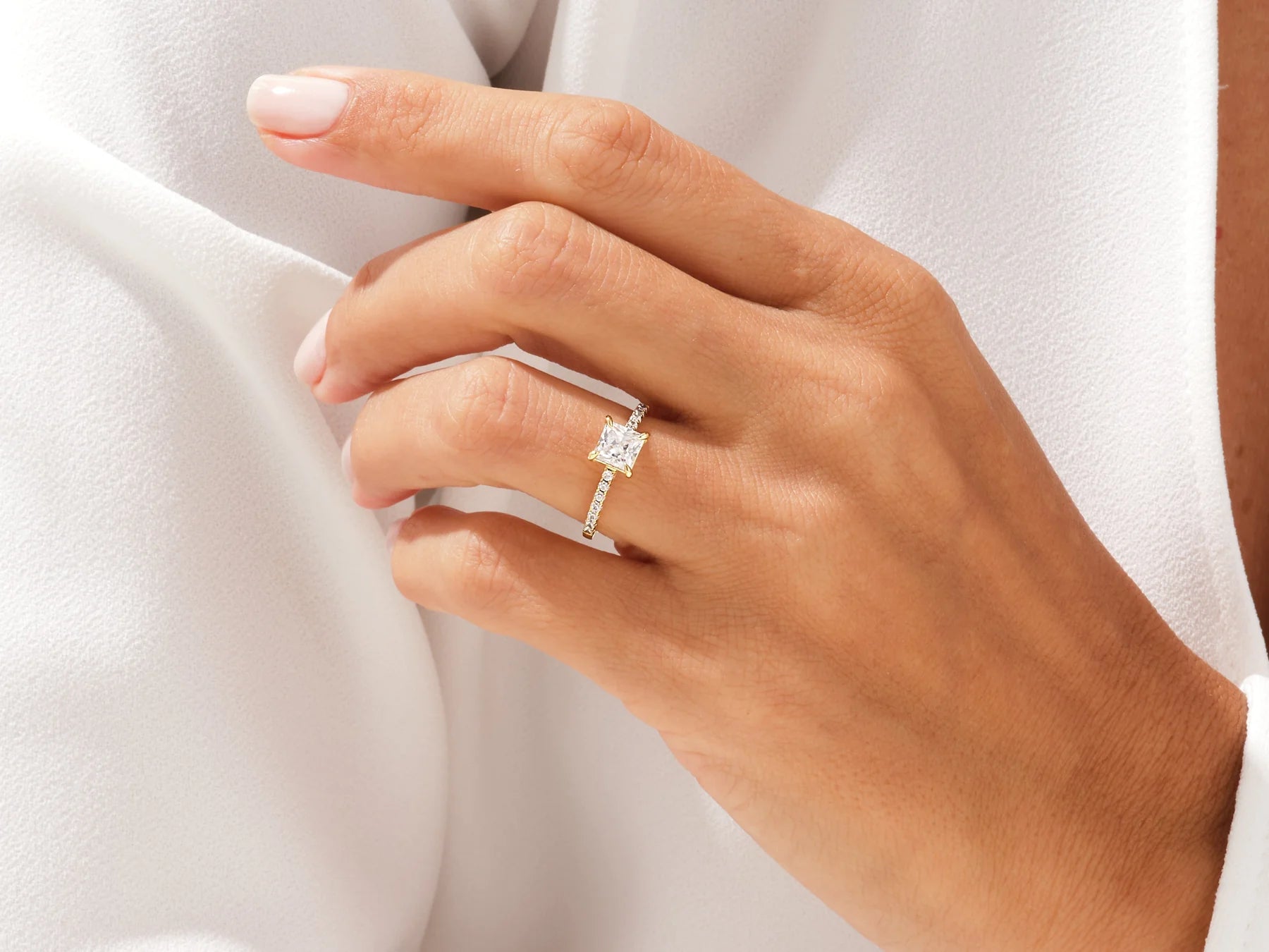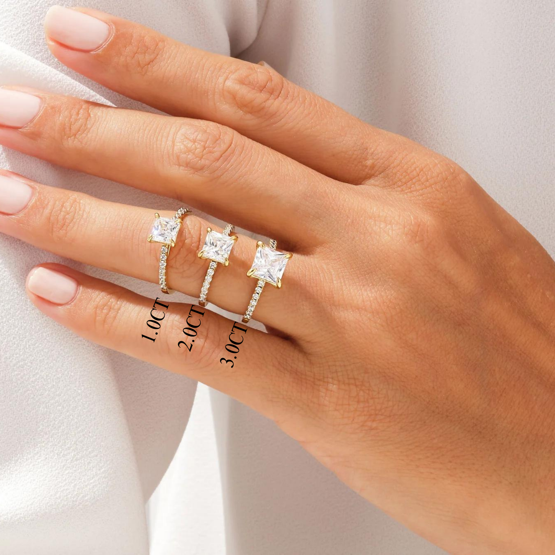 1.0CT Princess Diamond Pave Setting Moissanite Engagement Ring