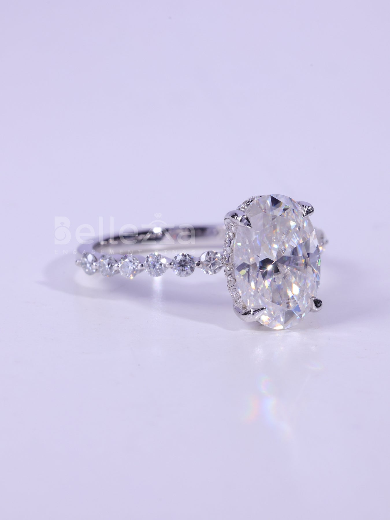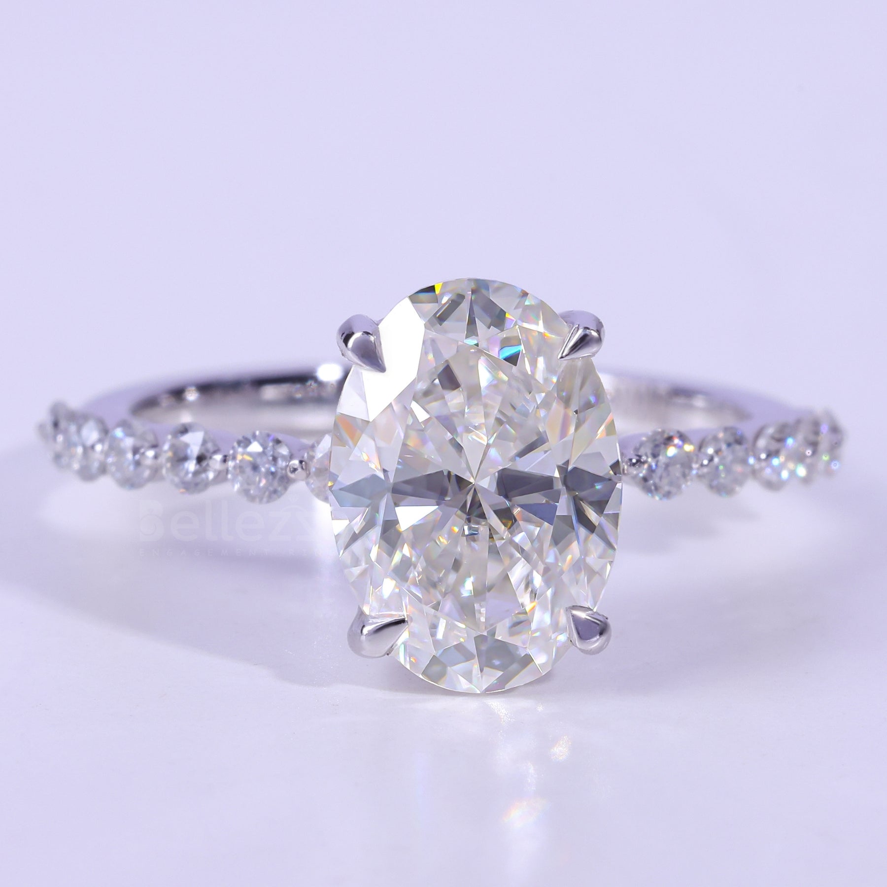 2.0CT-3.0CT Oval Cut Pave Setting Moissanite Engagement Ring