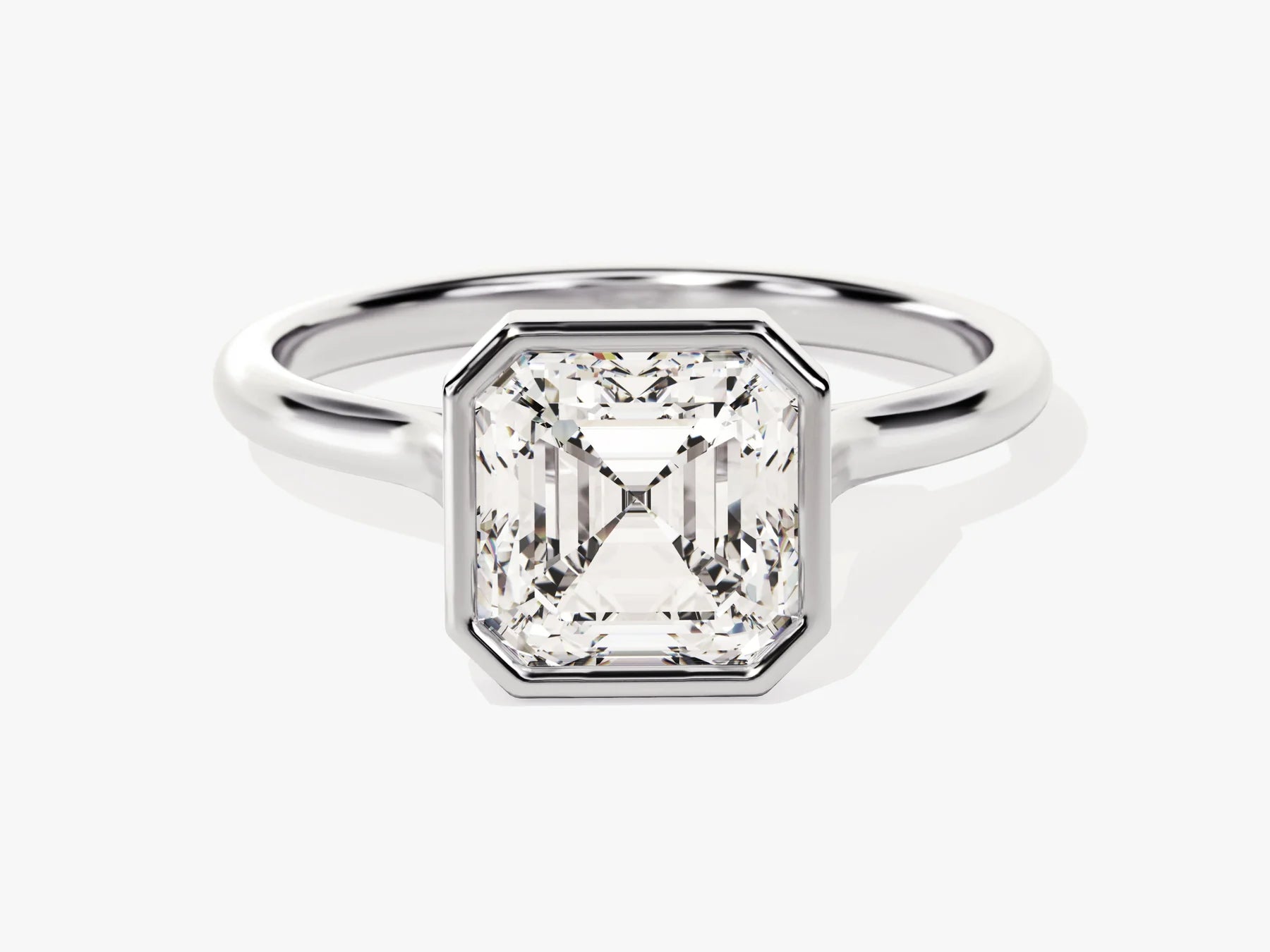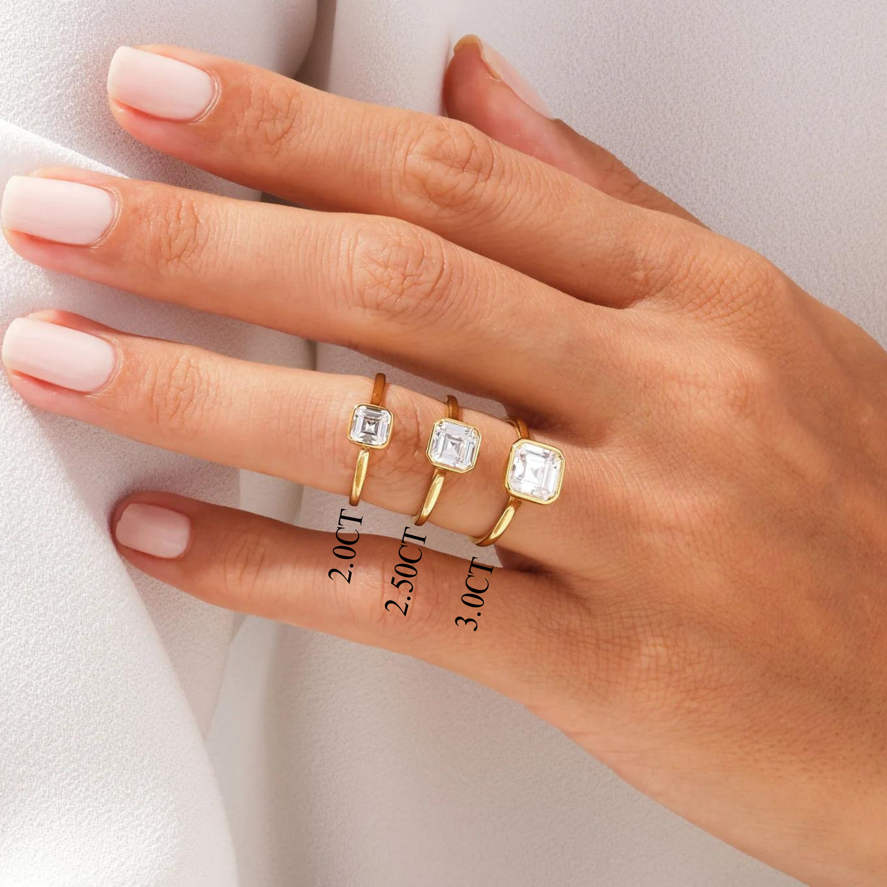 2.0CT Asscher Cut Bezel Setting Solitaire Moissanite Engagement Ring