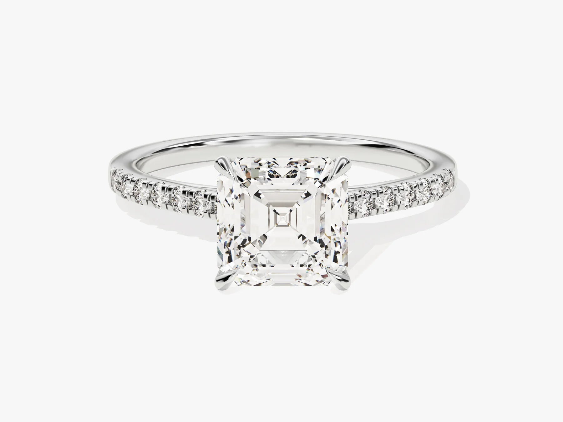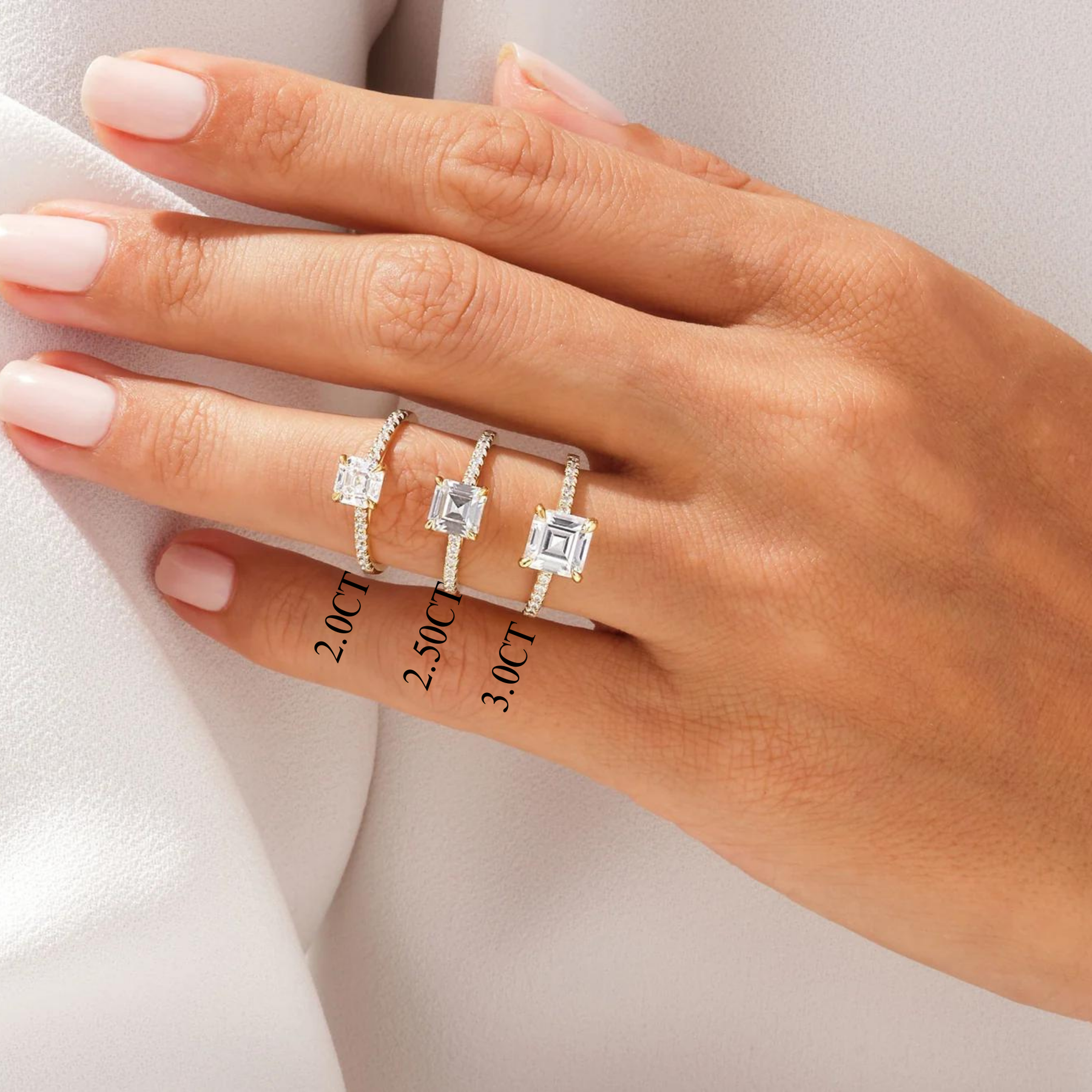 2.0CT Asscher Diamond Pave Setting Moissanite Engagement Ring