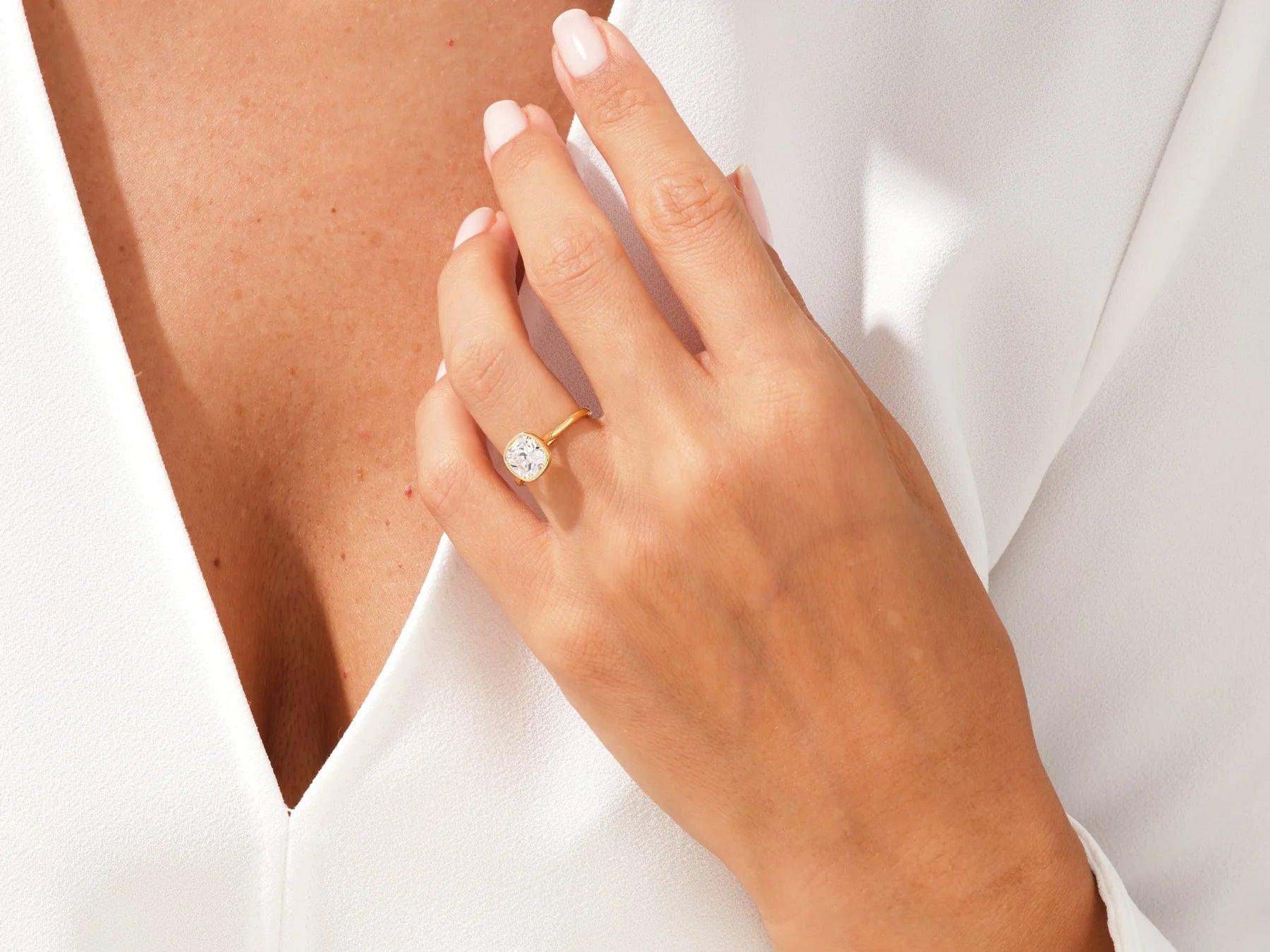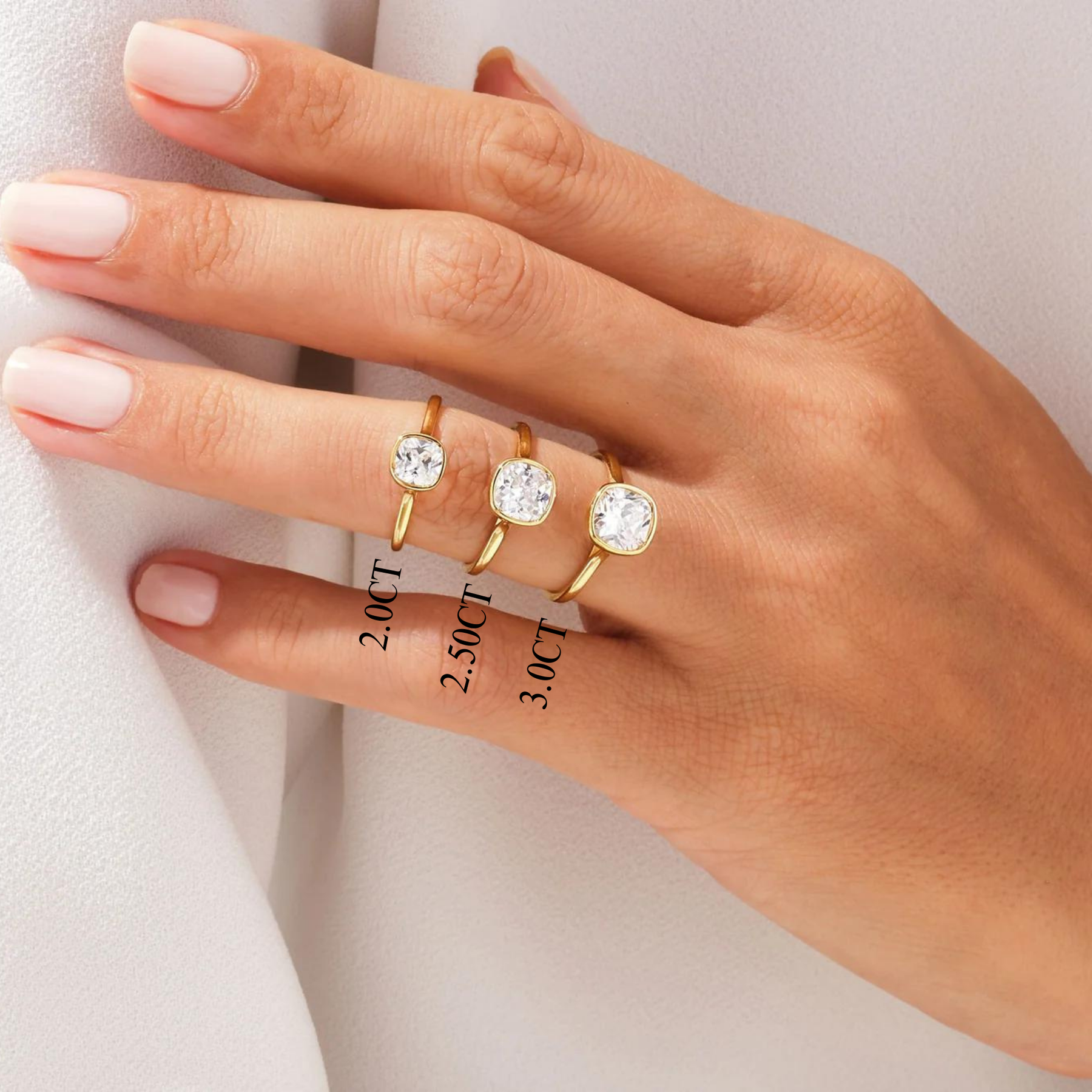 2.0CT Cushion Cut Bezel Setting Solitaire Moissanite Engagement Ring