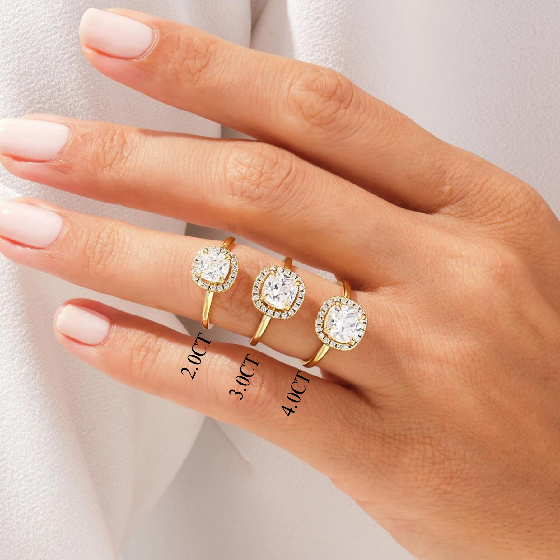 2.0CT Cushion Diamond Halo Moissanite Engagement Ring