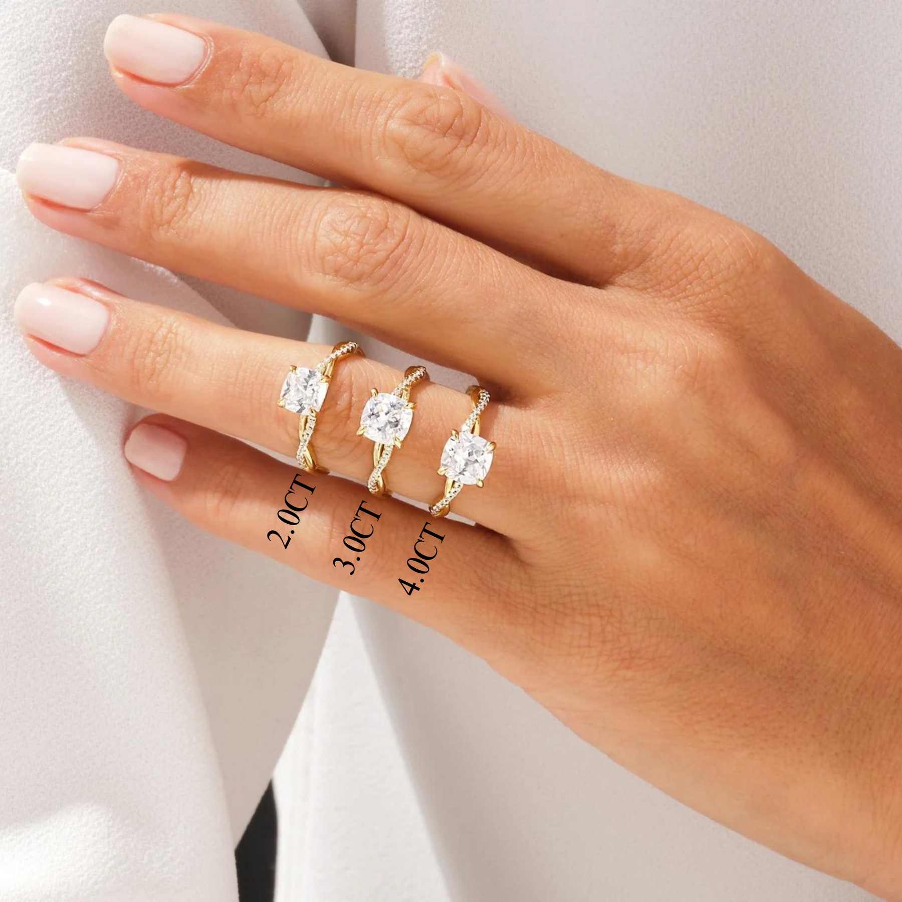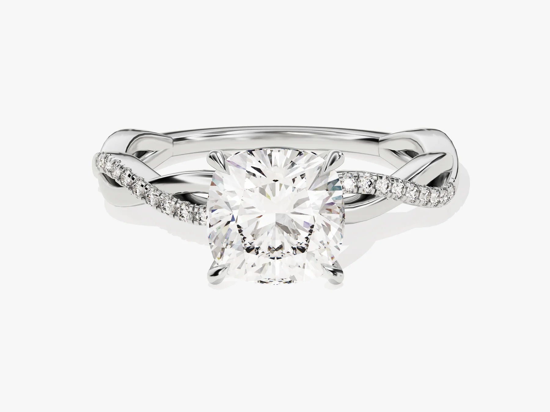 2.0CT Cushion Diamond Twisted Pave Setting Moissanite Engagement Ring