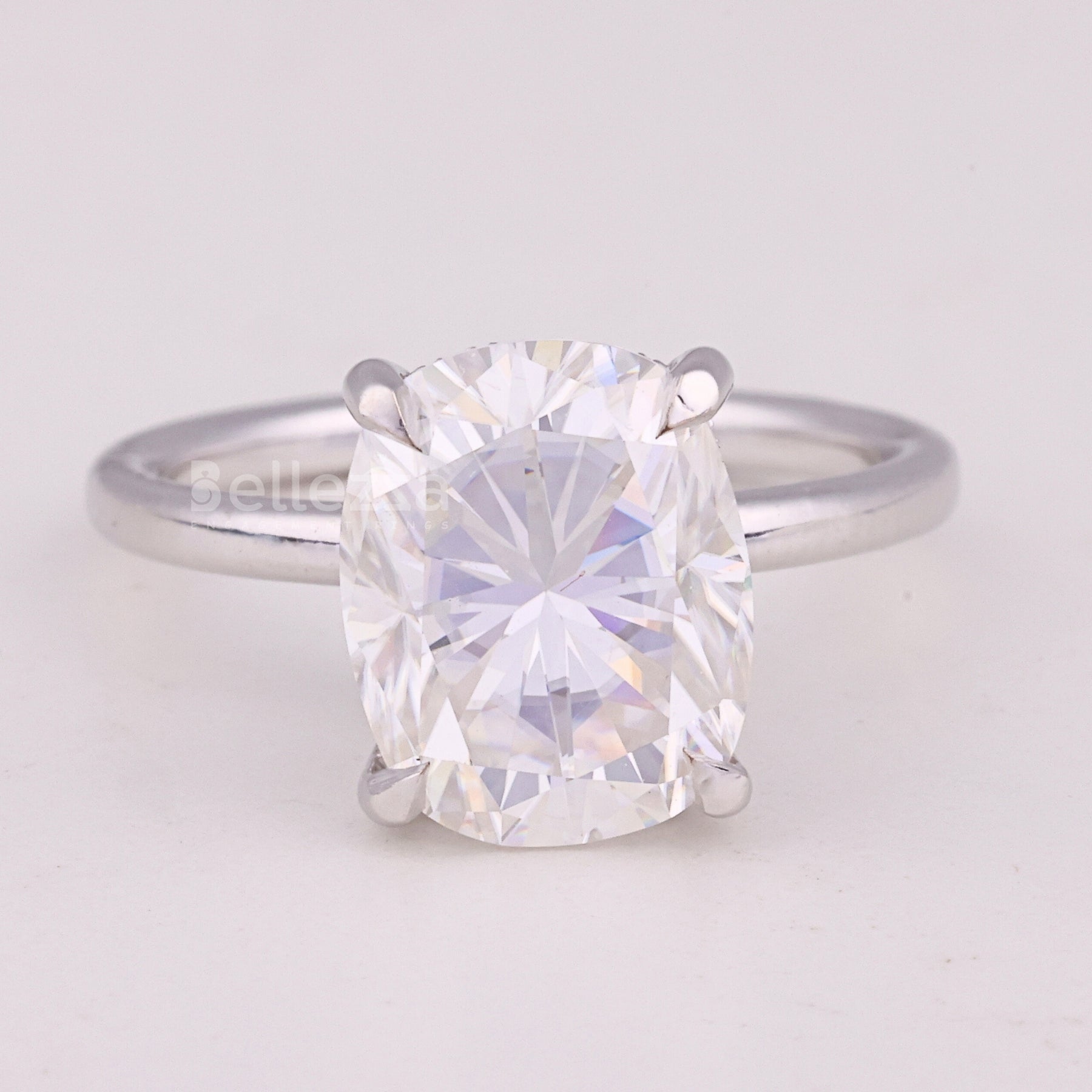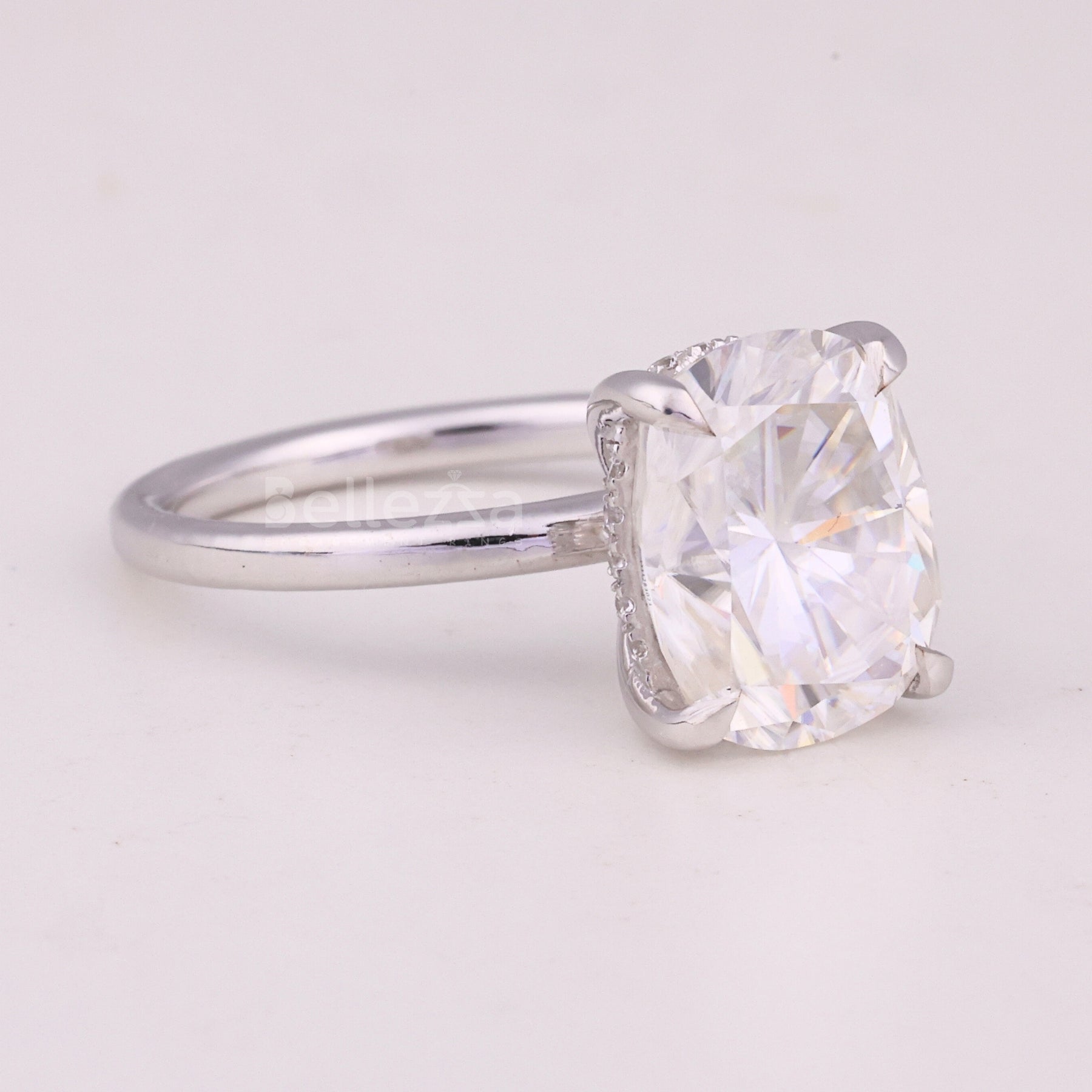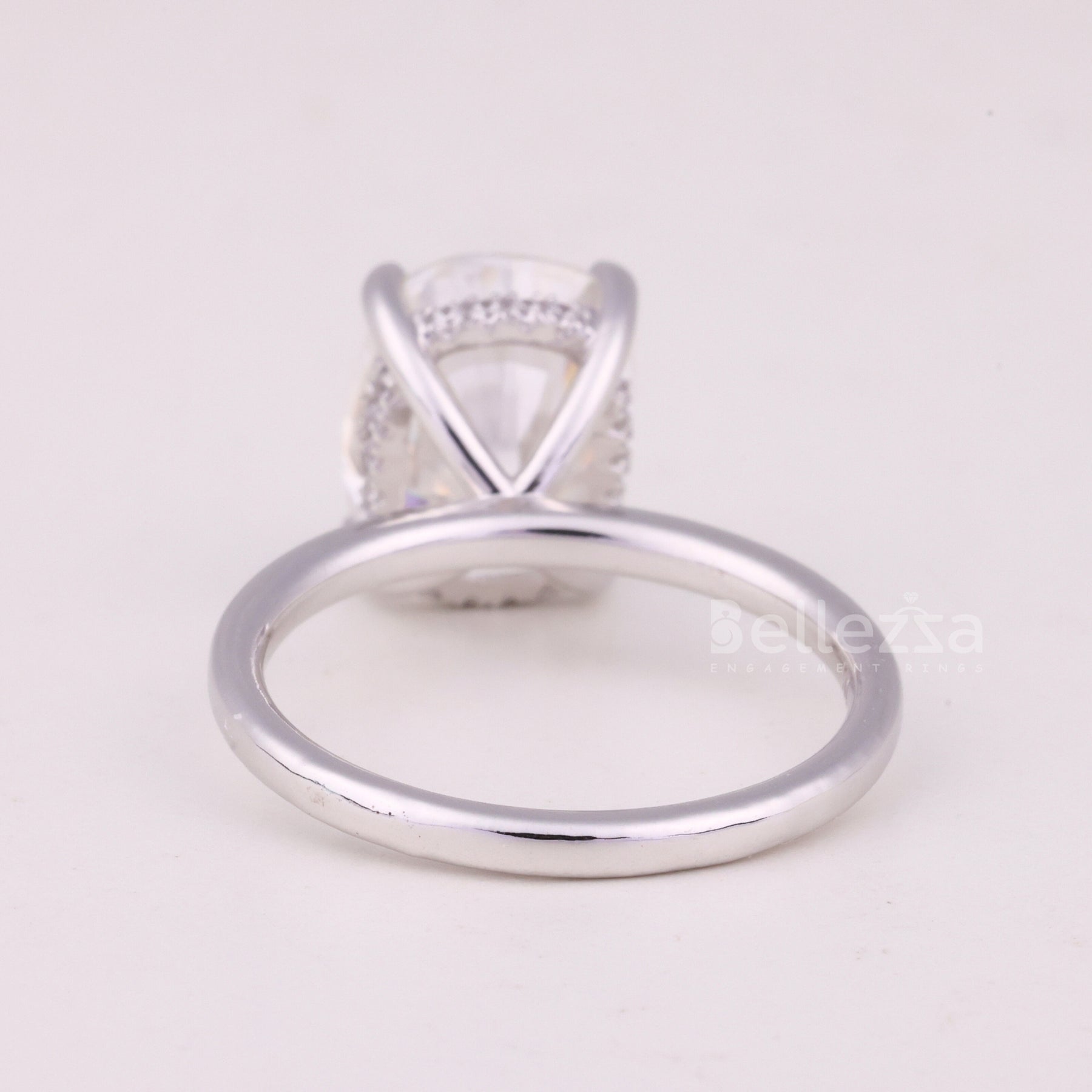 2.0CT Elongated Cushion Cut Hidden Halo Moissanite Engagement Ring