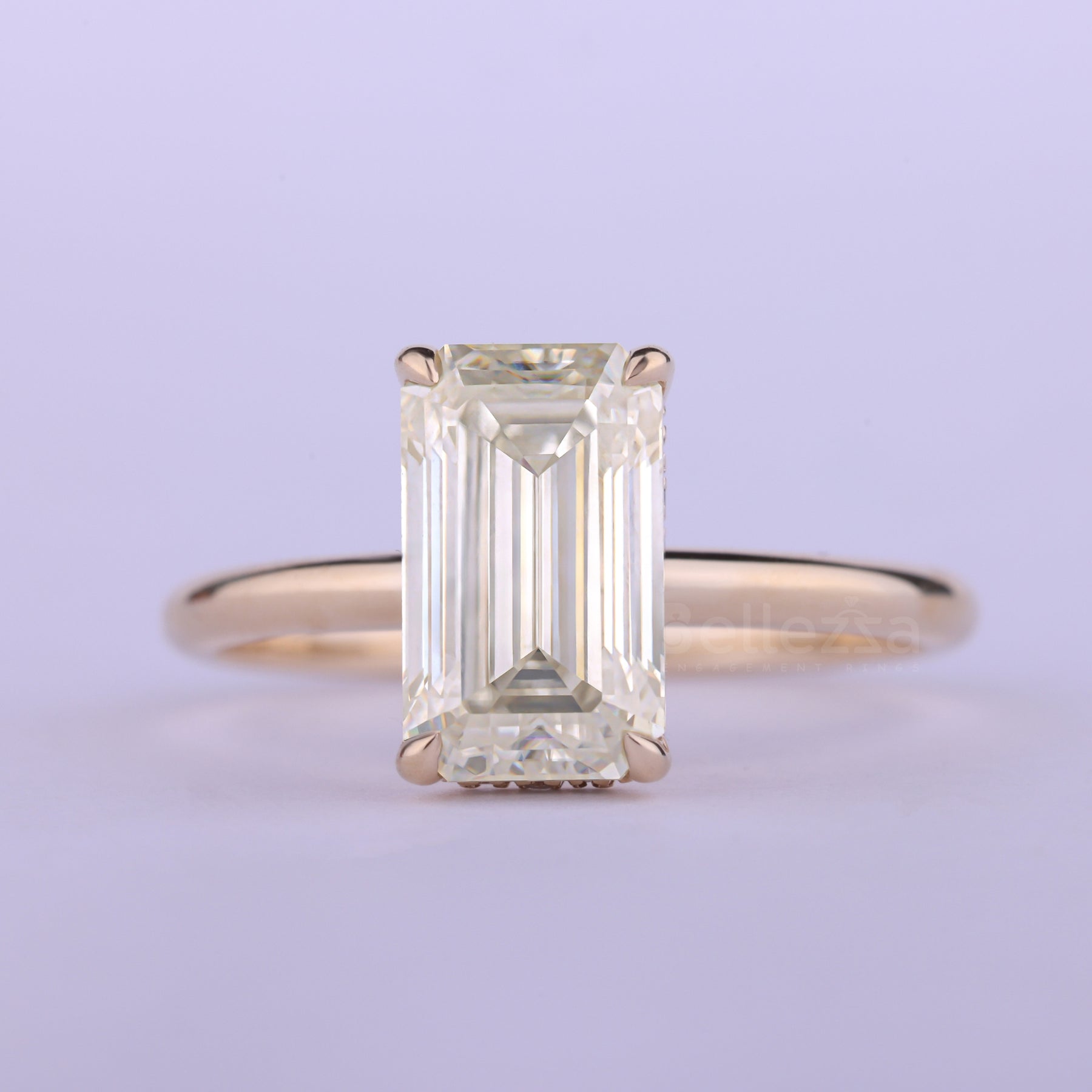 ✥The image showcases a stunning 2.0CT elongated emerald cut diamond in this sophisticated Hidden Halo Engagement Ring. The sleek emerald cut features clean lines and exceptional clarity, offering a timeless, elegant silhouette that beautifully elongates the finger. A subtle hidden halo beneath the center stone adds secret sparkle and depth without overpowering its classic shape. Expertly crafted for lasting durability and brilliance, this engagement ring is the perfect choice for those who appreciate refined elegance with a modern twist.