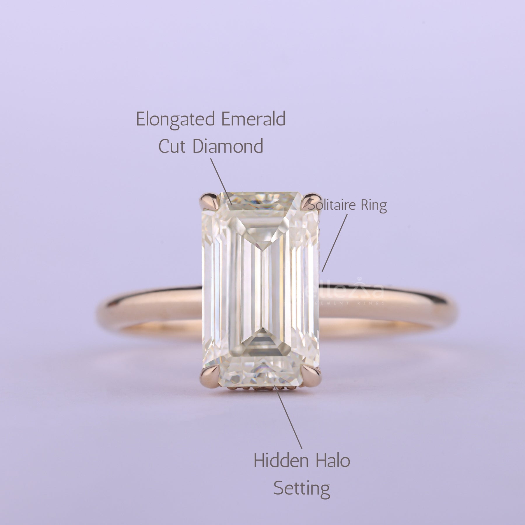 2.0CT Elongated Emerald Cut Hidden Halo Engagement Ring