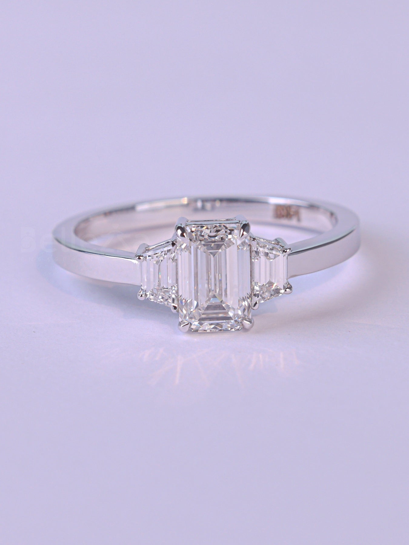 2.0CT Emerald Cut Diamond Three Stone Moissanite Engagement Ring