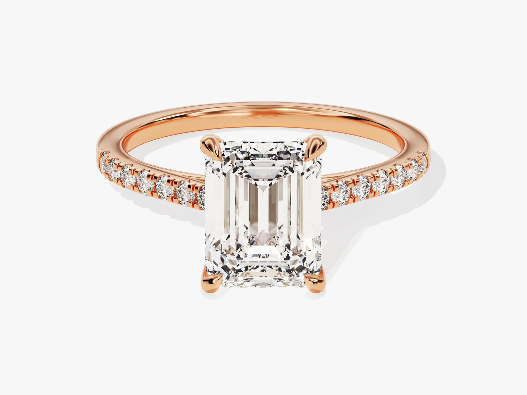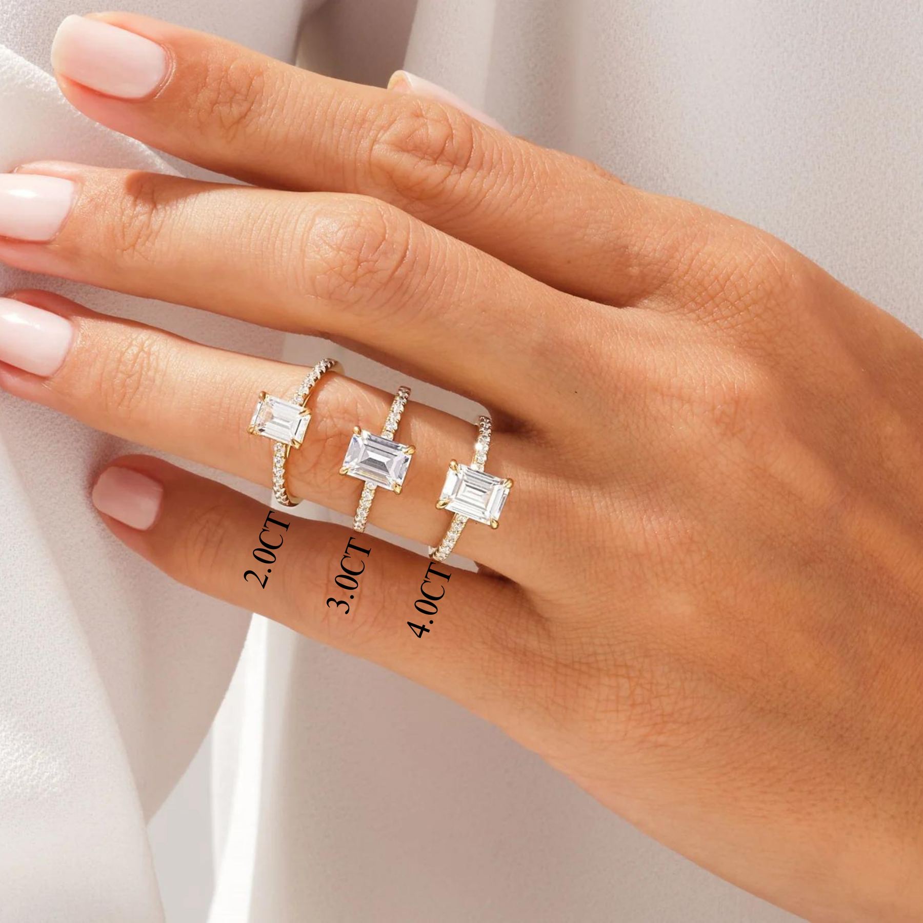 2.0CT Emerald Diamond Pave Setting Moissanite Engagement Ring