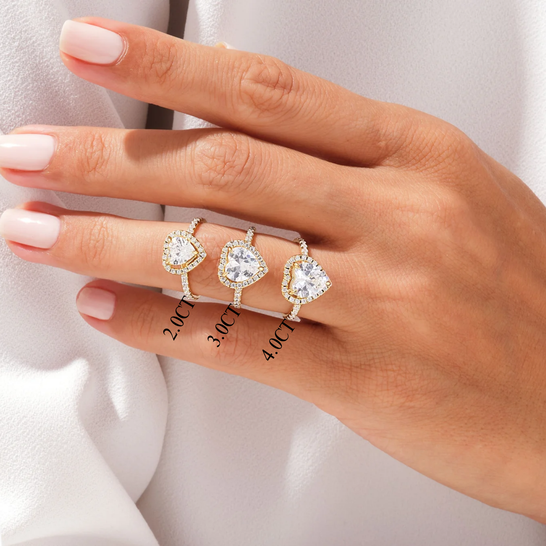 2.0CT Heart Diamond Halo Pave Setting Moissanite Engagement Ring