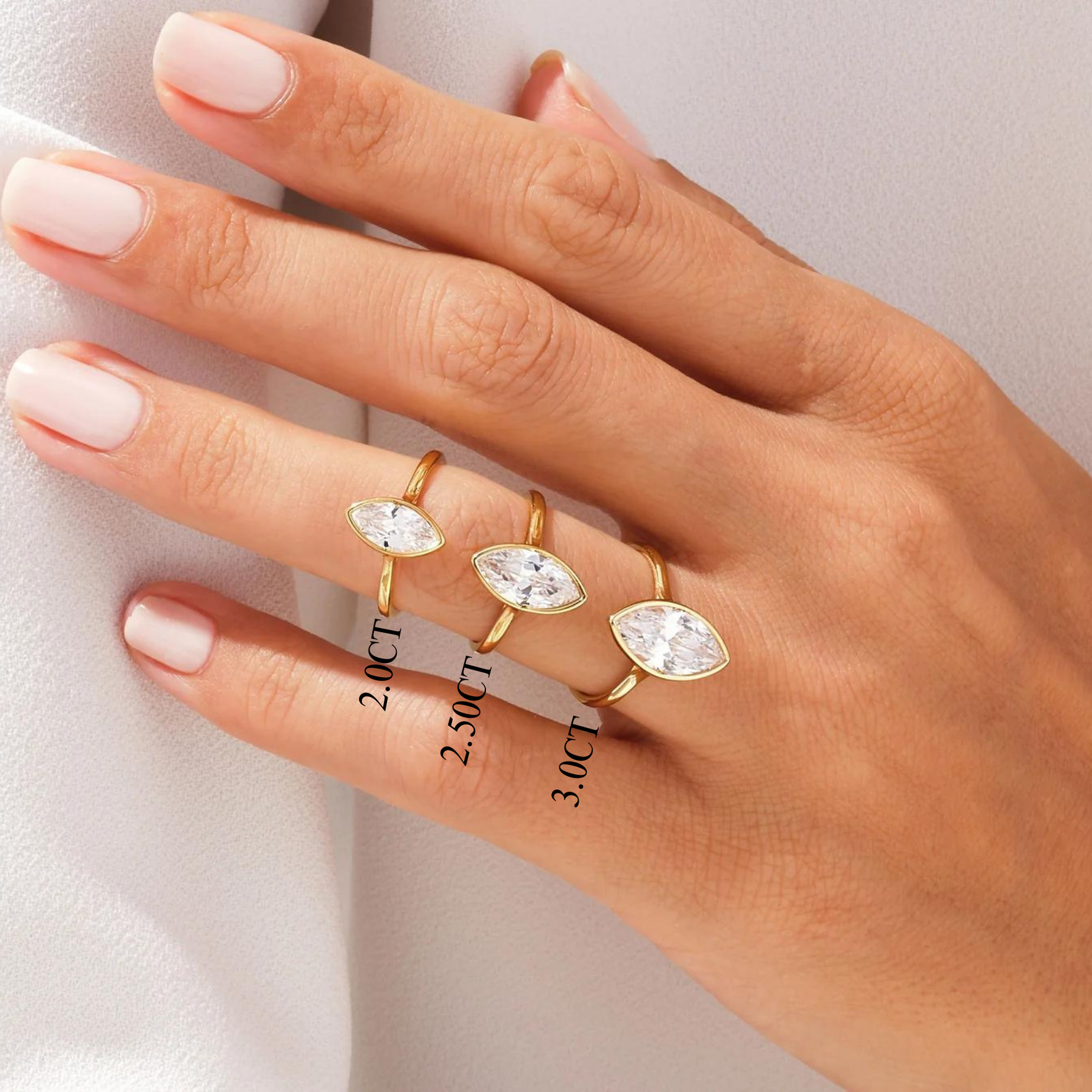 2.0CT Marquise Cut Bezel Setting Solitaire Moissanite Engagement Ring